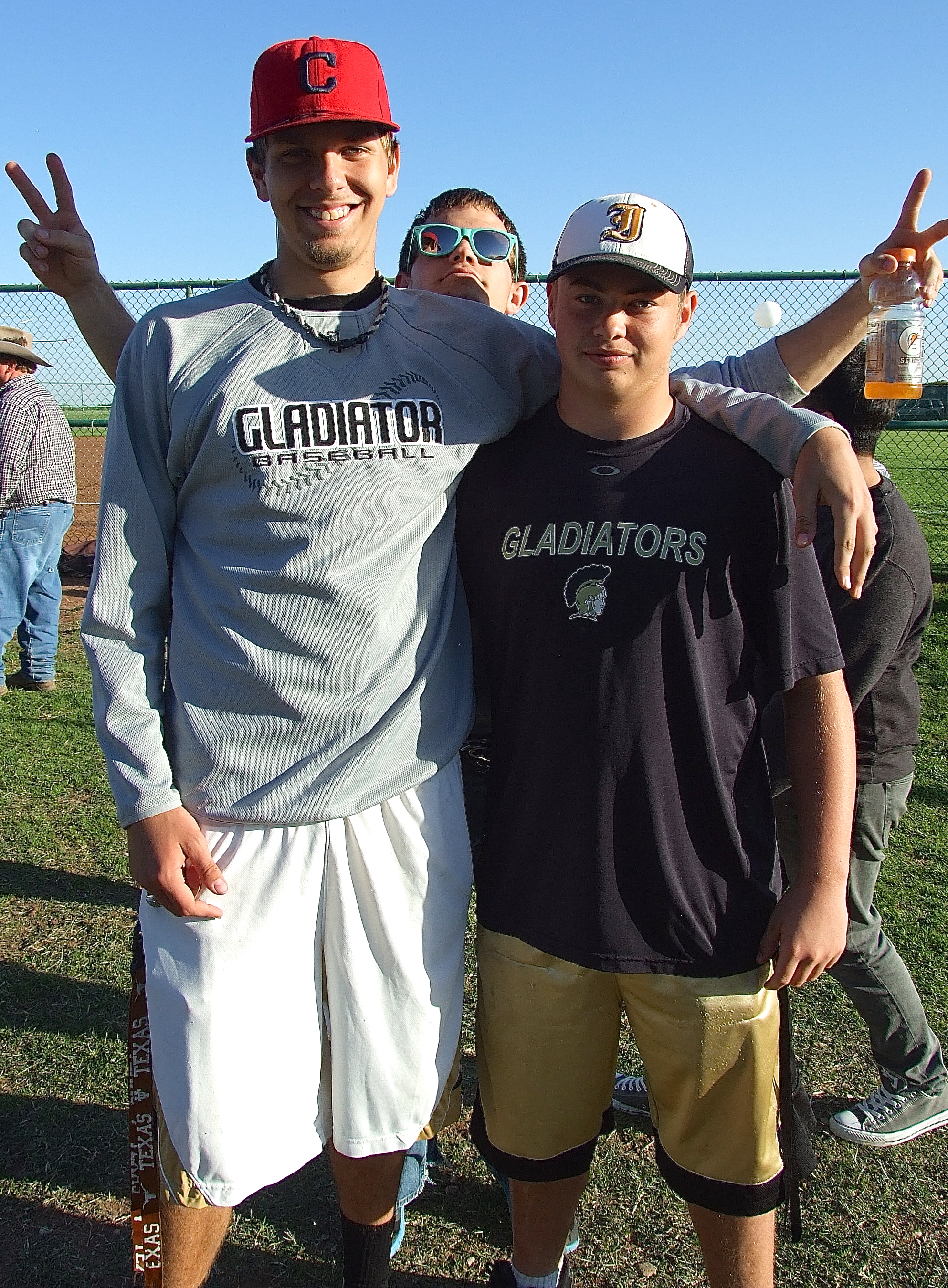 Doubles tennis partners and the 2013 district champions, Cole Hopkins (Sr.) and Zain Byers (Jr.), will team up with alternate, Chase Hamilton (Sr.), pictured in the back, and represent Italy at the regional tennis tournament in Abilene on Wednesday. This past Saturday, the three Gladiators celebrated Senior Day at the softball field with the Lady Gladiators.
