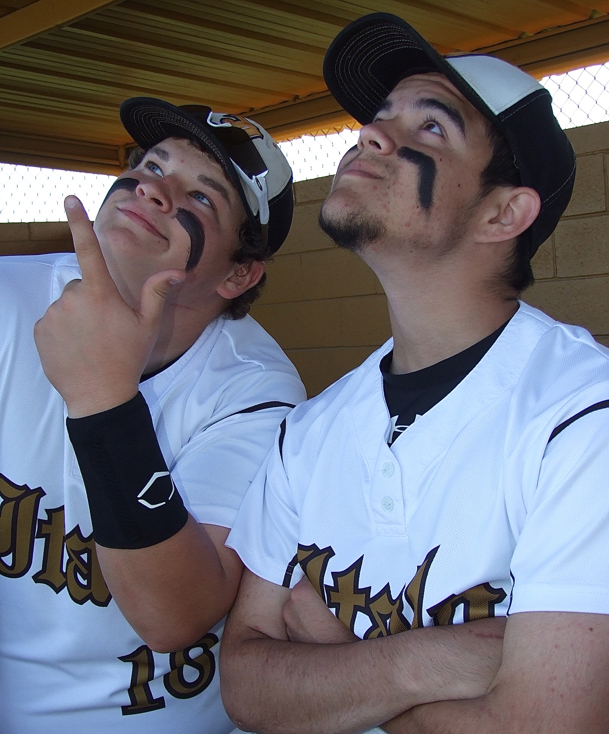 Balloons! Their Balloons!! Gladiators John Byers(18) and Tyler Anderson(11) are easily distracted before the start of the game but focus-in in time to beat the Eagles. (Barry Byers)