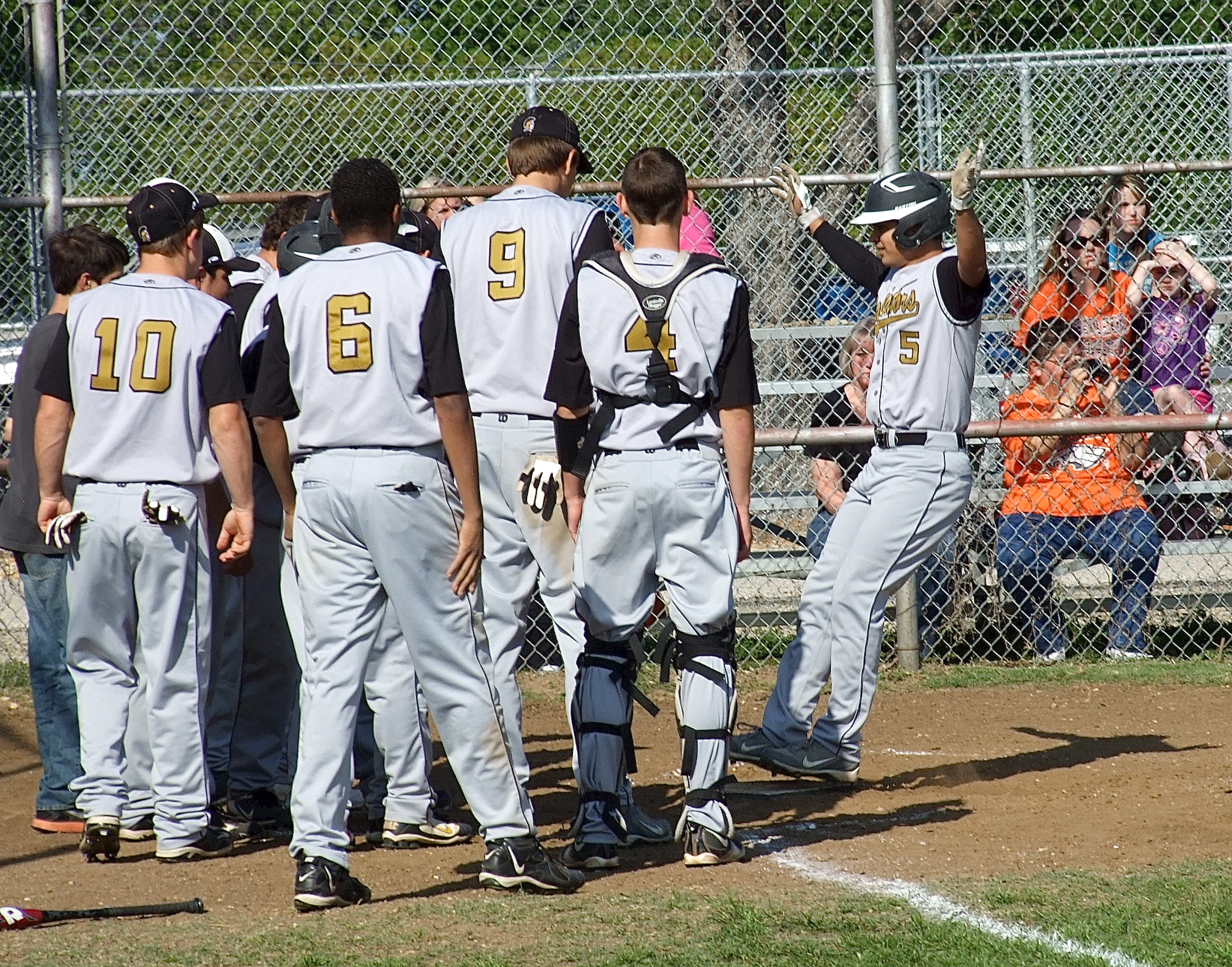 The Italy Gladiators wrap up district title with 16-1 win over the Avalon Eagles « previous story album next » Italy senior Reid Jacinto(5) leaps onto home plate after hitting a 3 run, out-of-the-park home run with his teammates ready to welcome Jacinto home. (Barry Byers) Download original photo