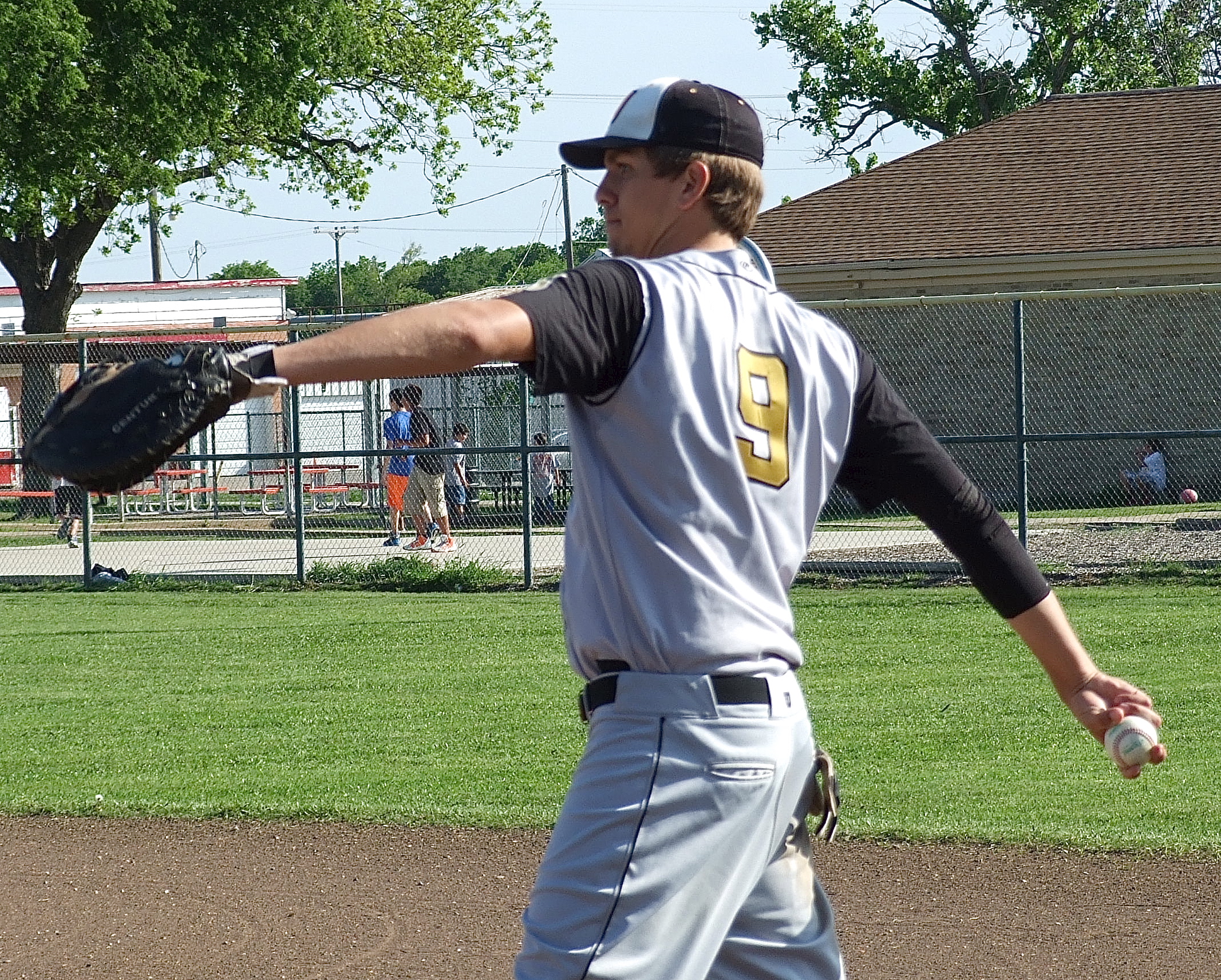 Gladiators get the job done on the diamond; 2013 District Champions! « previous story album next » Cole Hopkins(9) gets warmed up at first base. (Barry Byers) Download original photo