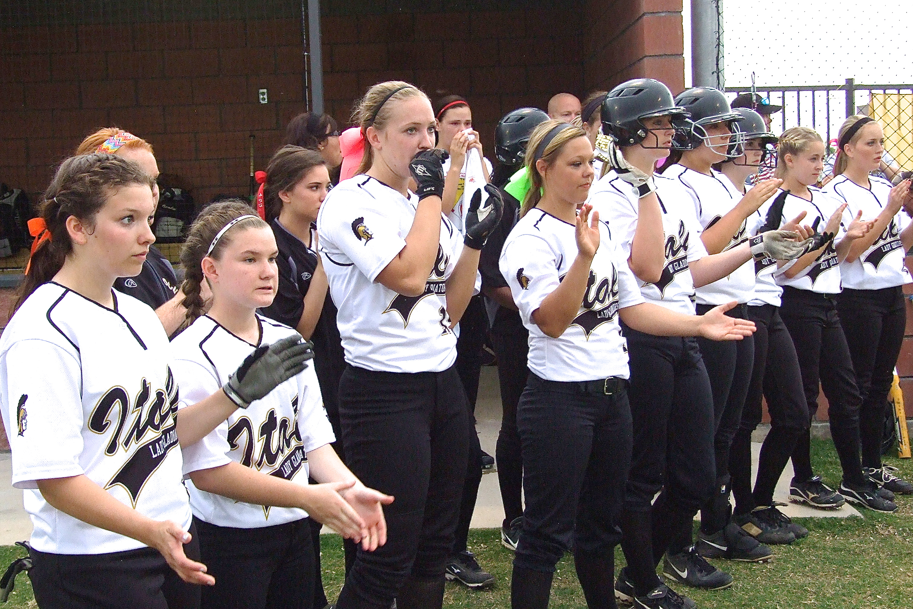 Lady Gladiators lead 3-1 before game one is rescheduled due to lightning « previous story album next » The Lady Gladiators show sportsmanship during Bosqueville’s introductions. (Barry Byers) Download original photo