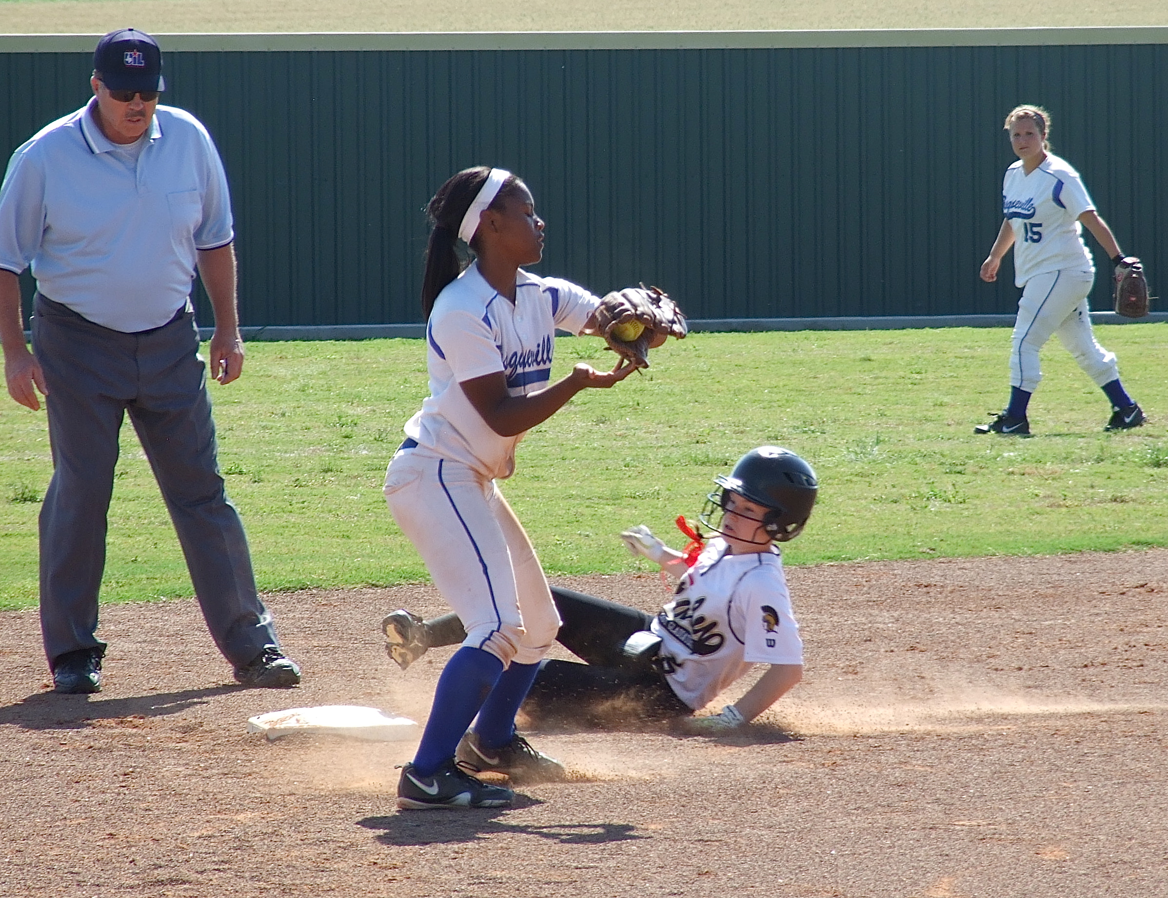 Lady Gladiators’ season ends as regional quarterfinalists against Bosqueville « previous story album next » Tara Wallis(5) slides safely into second base which was tough to do this weekend against Bosqueville. (Barry Byers) Download original photo