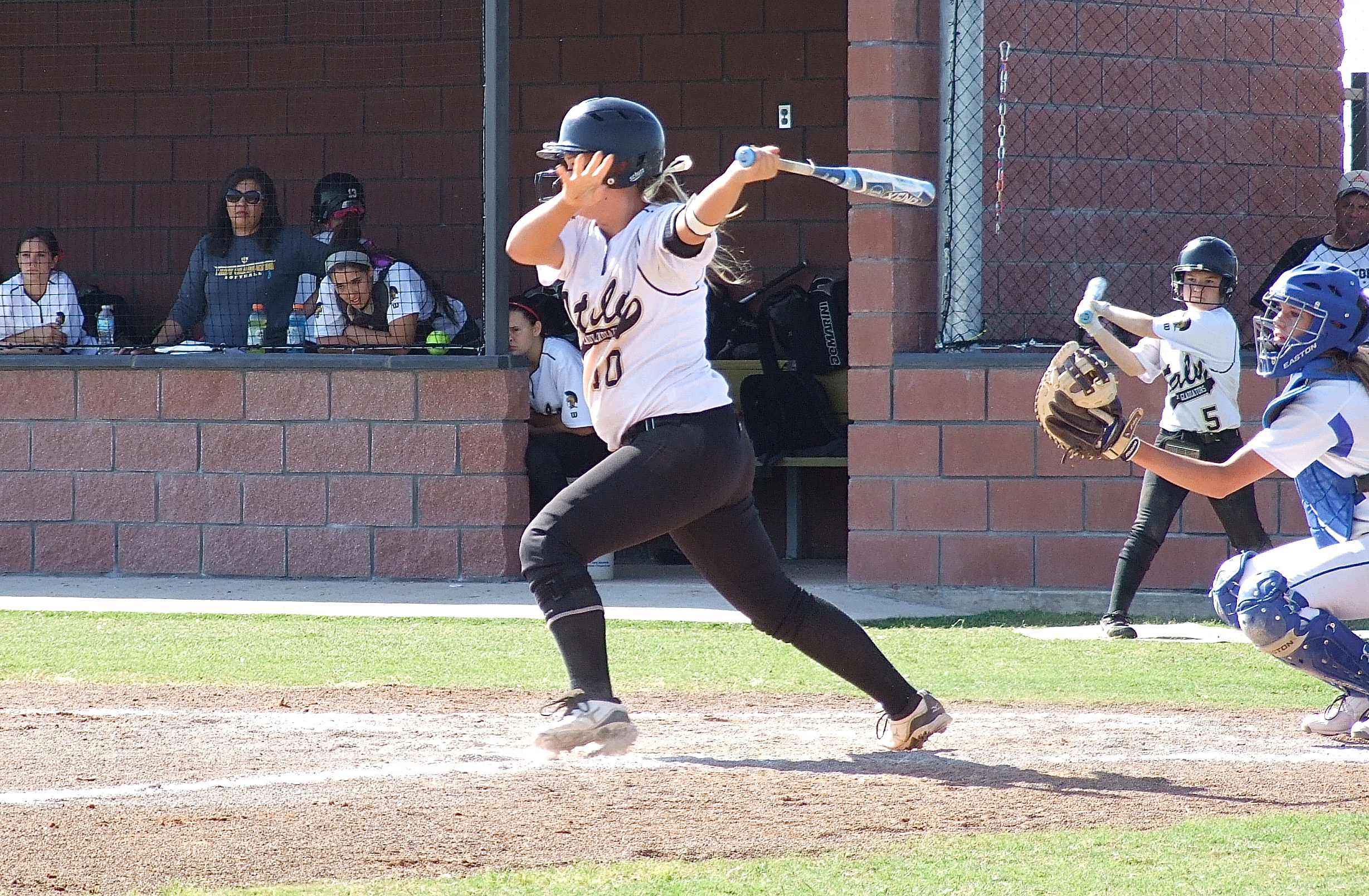 Lady Gladiators fall in three to Bosqueville « previous story album next » One of Italy’s leading RBI hitters this season, Paige Westbrook(10), rips a hit toward Lady Bulldog defenders. (Barry Byers) Download original photo