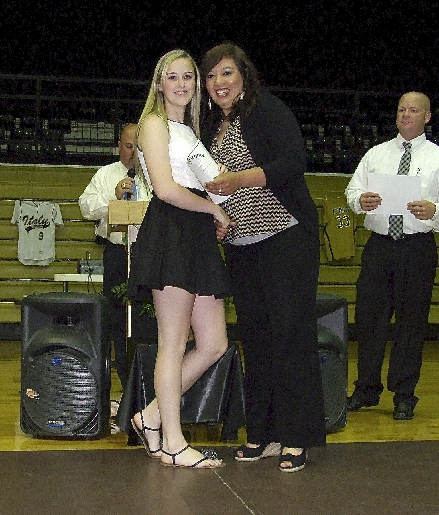 The 2013 Athletic Banquet continues with more and more awards being presented « previous story album next » Coach Tina Richards presents Kelsey Nelson with her all-district certificate Nelson earned for playing softball. (Barry Byers) Download original photo