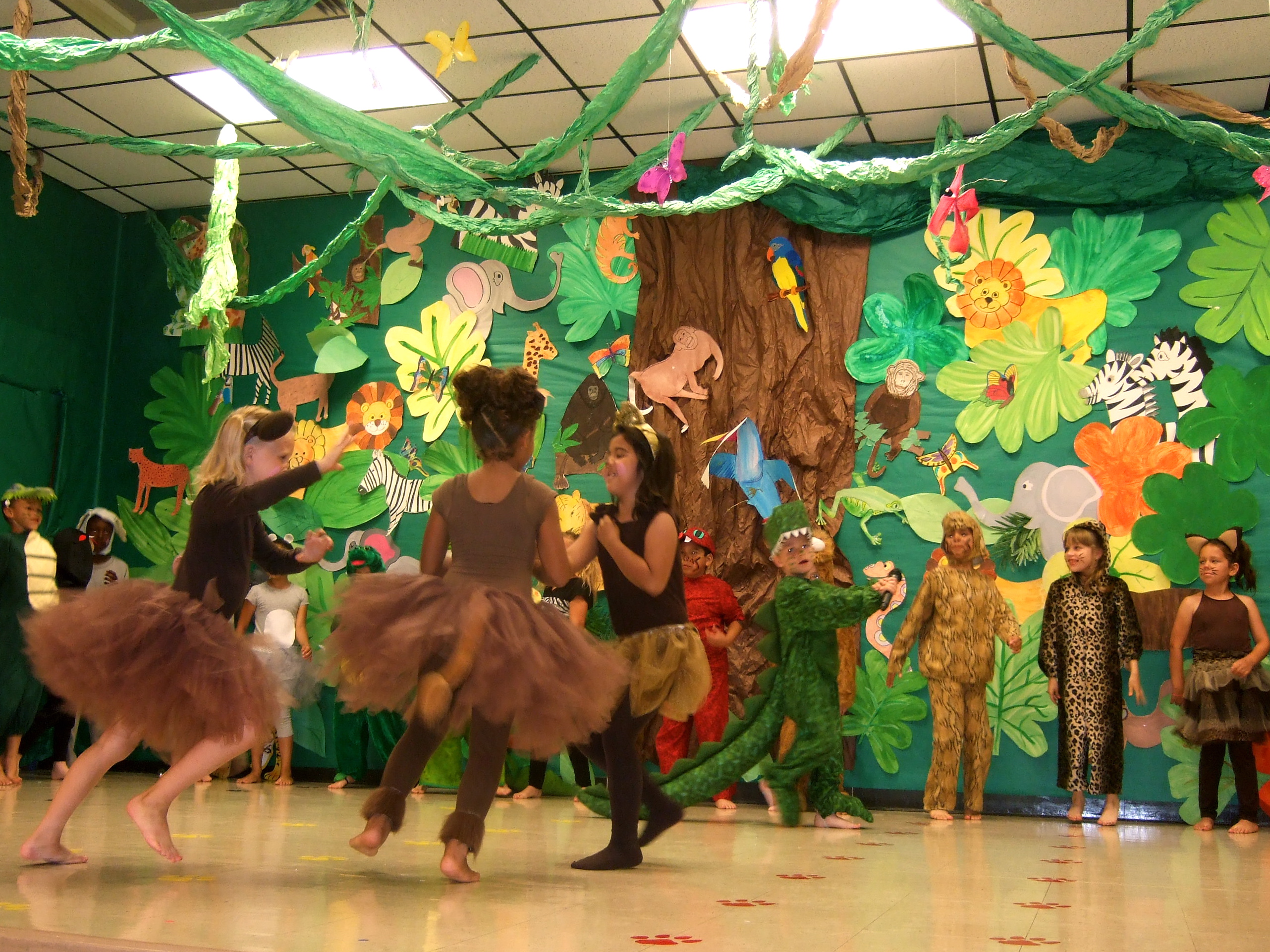 Stafford 1st graders star in ‘Deep in the Jungle’ « previous story album next » Three little monkeys and a ferocious alligator. (Cindy Sutherland) Download original photo