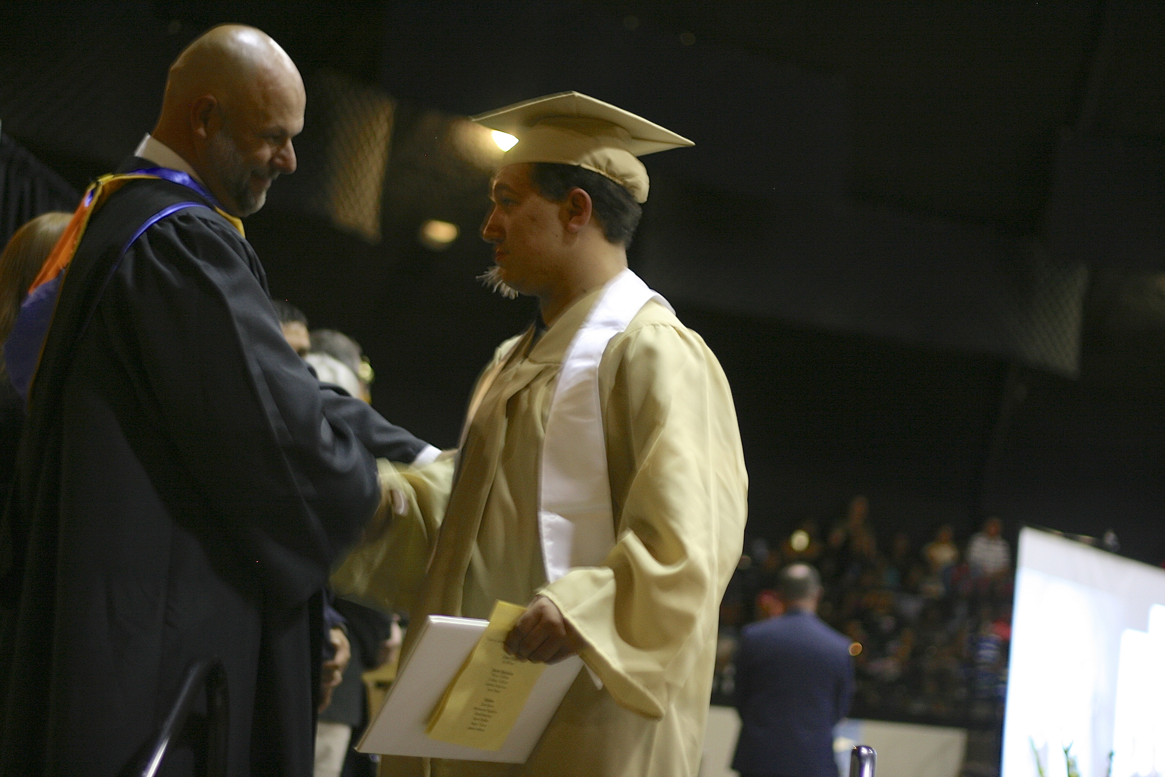 The IHS Class of 2013 stand together for the last time « previous story album next » Mr. Joffre gives Blake Vega a piece of advice before walking off the stage. (Anne Sutherland) Download original photo