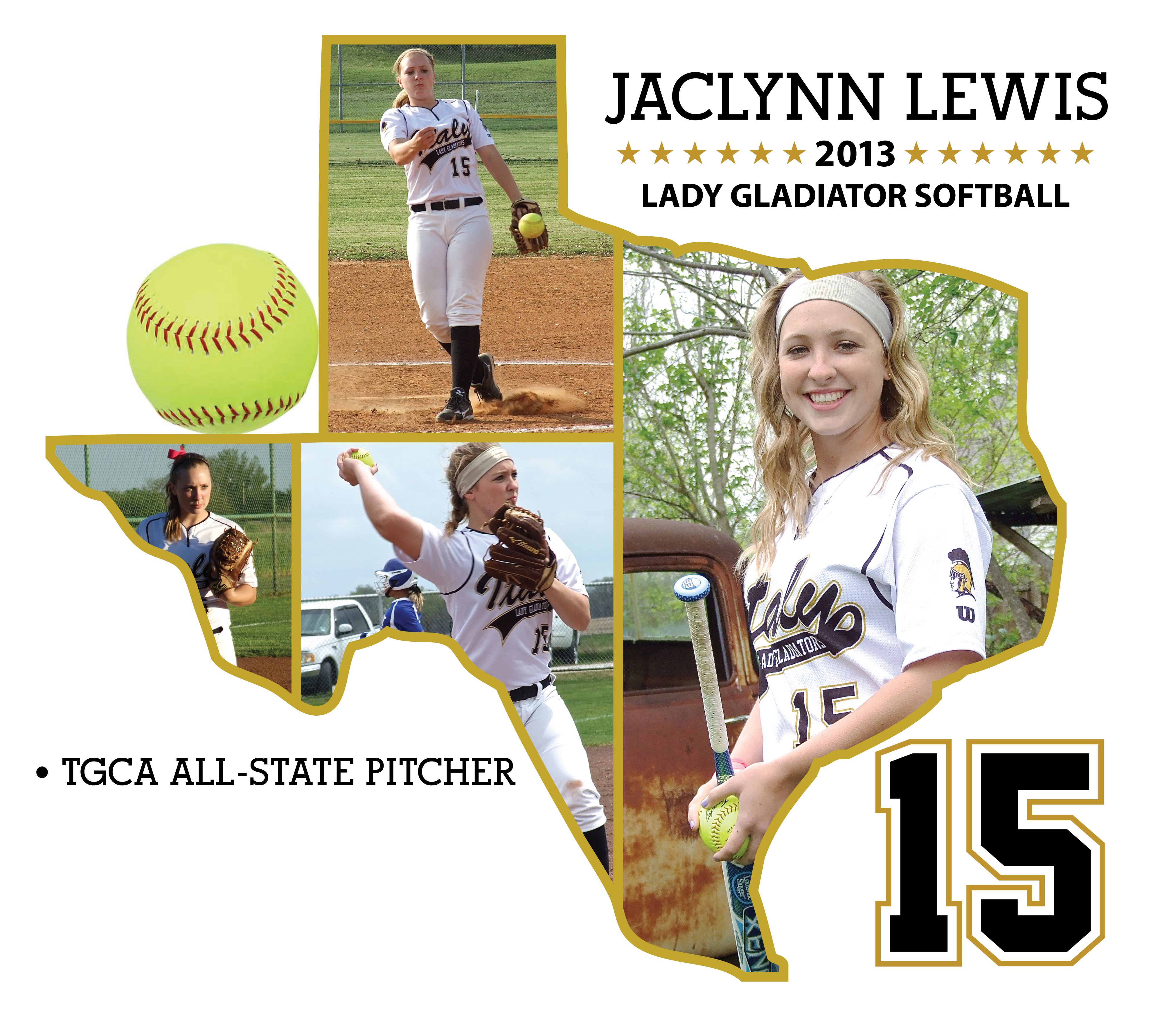 Italy Lady Gladiator sophomore pitcher and clutch hitter, Jaclynn Lewis was named to the 2013 TGCA All-State team for Class 1A DIvision 1 after posting 10 shutouts, striking out 227 batters and finishing the season with a 1.67 ERA. (Barry Byers)