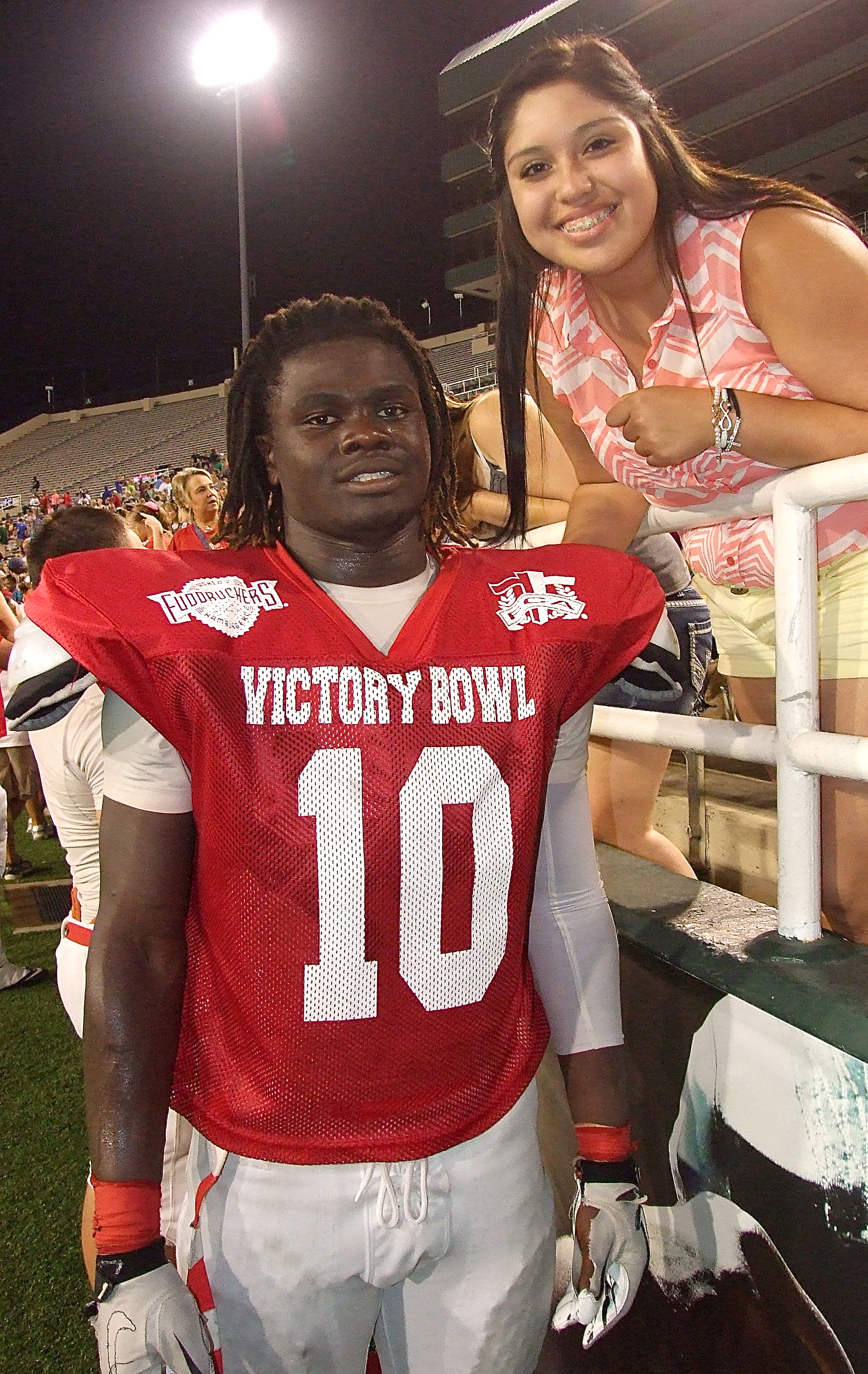 Congratulating Italy’s Ryheem Walker after his All-Star performance is his favorite fan Monserrat Figueroa, who will be a senior at Italy High School during the upcoming school year. (Barry Byers)