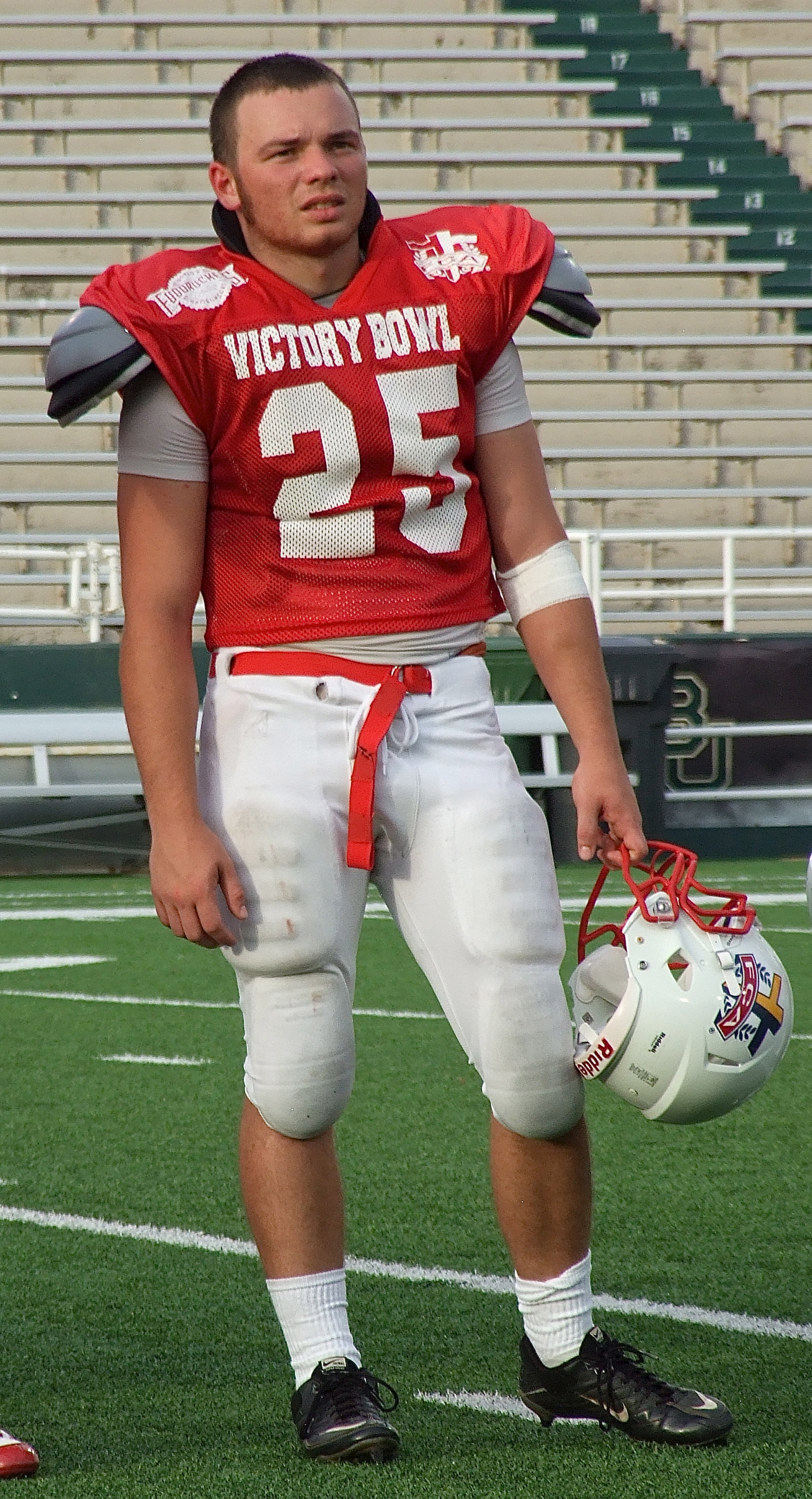 Representing Avalon High School, the Avalon Eagle Football program and the FCA Victory Bowl V Red Team All-Stars is Reece Marshall, who is introduced to Floyd Casey Stadium during a halftime presentation. (Barry Byers)