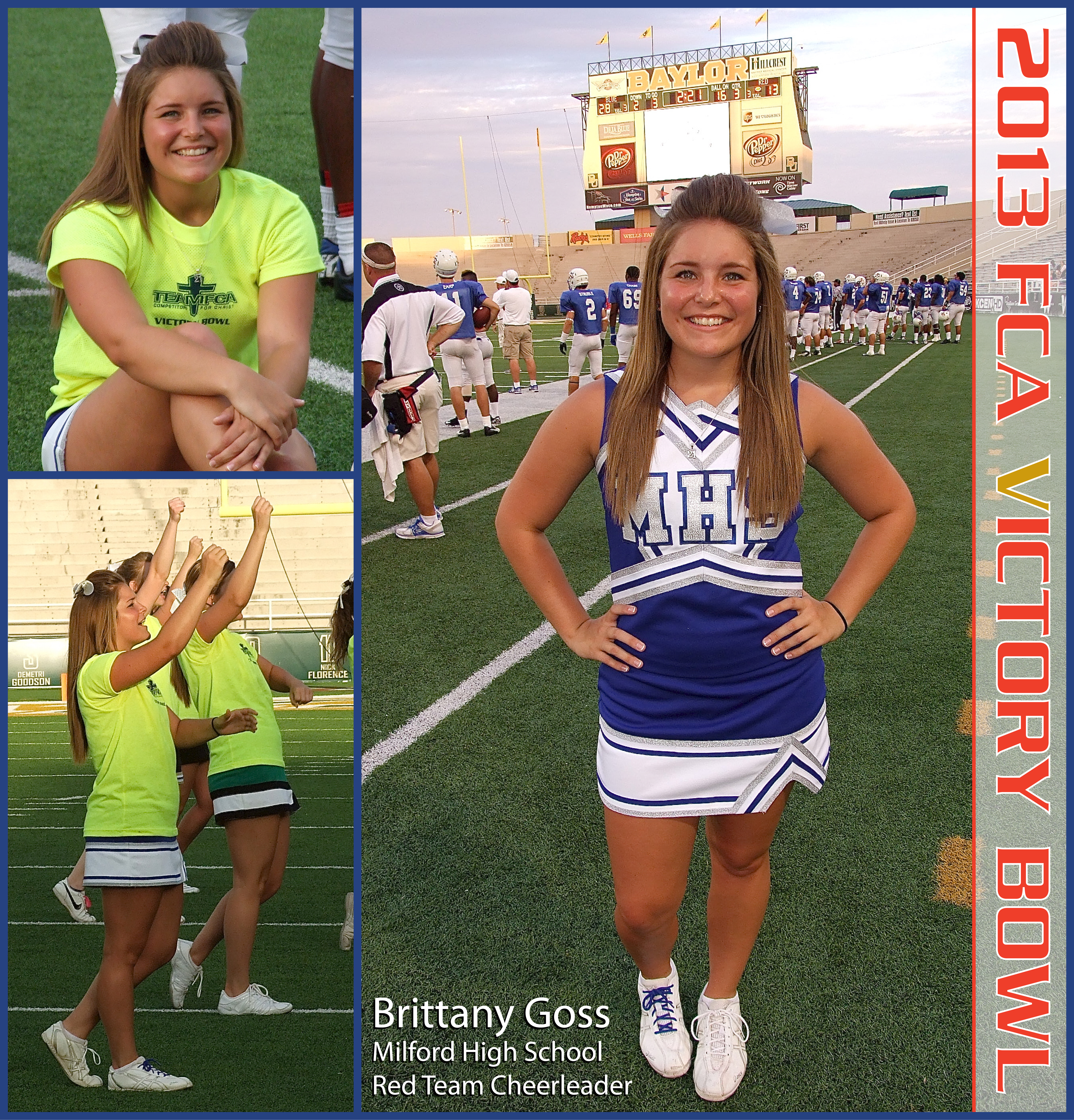 Italy’s Ryheem Walker impresses during 2013 FCA Victory Bowl V in Waco « previous story album next » Milford High School’s, Brittany Goss participated in the 2013 FCA Super Centex Victory Bowl V as a Red Team cheerleader. (Barry Byers) Download original photo