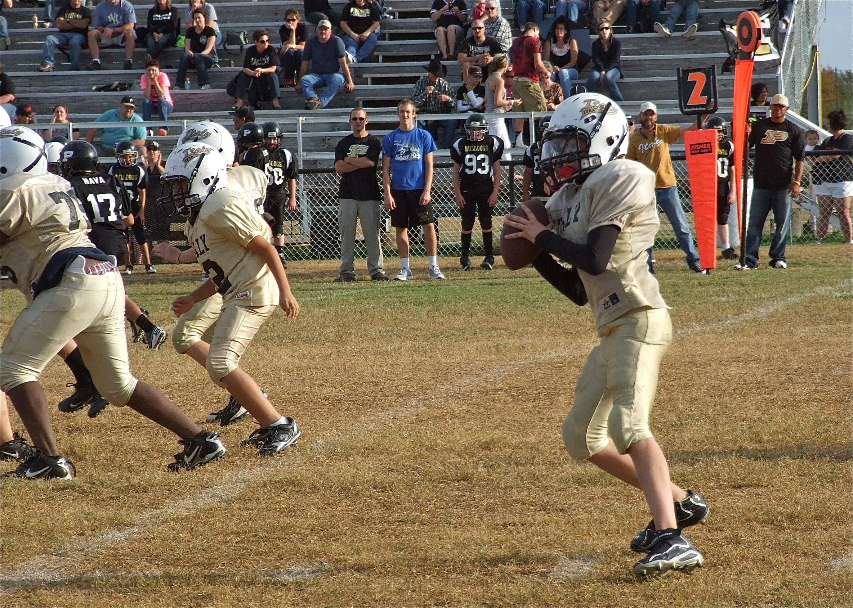 Final IYAA Football and Cheer signups Saturday, Aug. 3, from 2-4pm at Upchurch « previous story album next » Ryder Itson(2) looks for an open receiver as Anthony Lusk(75) and Michael Gonzalez(12) buy Itson time in the pocket. (Barry Byers) Download original photo