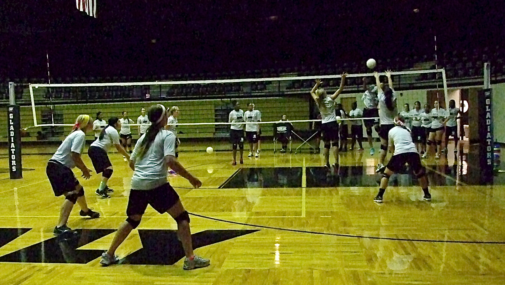 Italy’s volleyball and football programs thrive during summer training « previous story album next » Sophomore Halee Turner and senior Paige Westbrook combine for the block attempt, with Bailey Eubank backing them up, as the varsity gets challenged. (Barry Byers) Download original photo