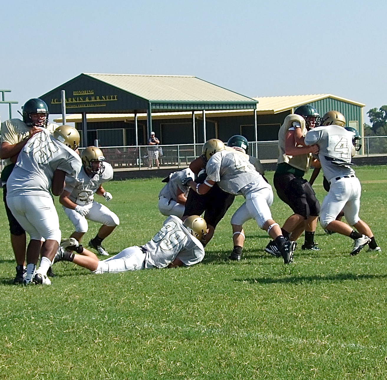 Additional scrimmage action from Italy’s 6 TD outing against Valley Mills « previous story album next » Bailey Walton(99) grabs a foot while Levi McBride(3) and Coby Bland(44) tag an Eagle runner. (Barry Byers) Download original photo