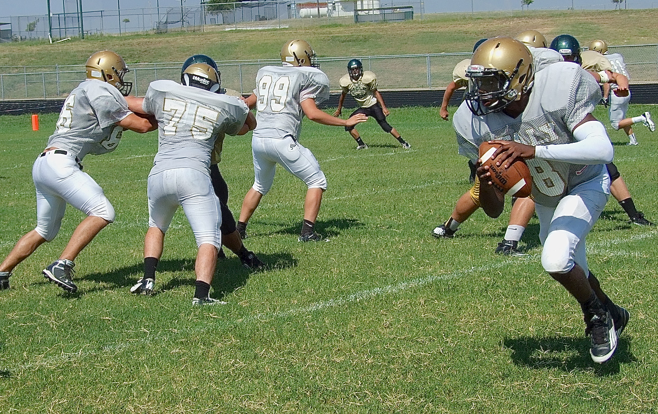 Additional scrimmage action from Italy’s 6 TD outing against Valley Mills « previous story album next » TaMarcus Sheppard(8) thrives behind the blocking of Cody Medrano(66), Kyle Fortenberry(75), Bailey Walton(99) and Kevin Roldan(50). (Barry Byers) Download original photo