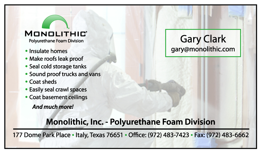 Contact Gary Clark of Monolithic, Inc., Polyurethane Foam Division, to request a free on-site consultation to see if spraying polyurethane foam is the best solution for you! (Barry Byers)