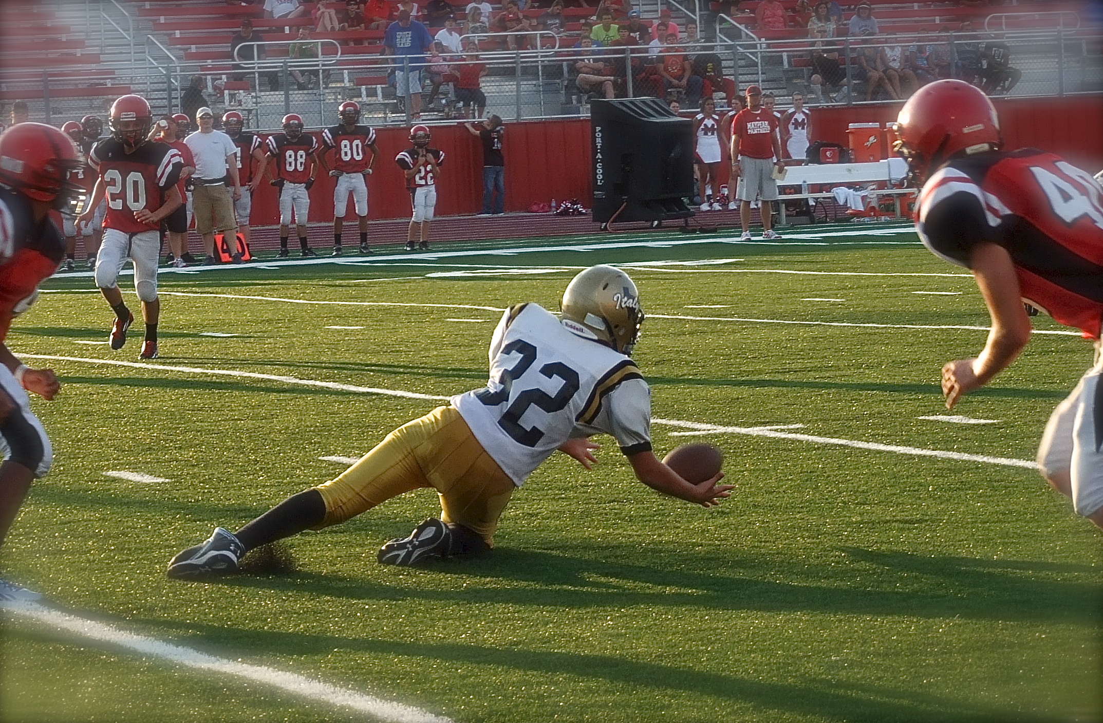 Italy and Maypearl’s JV squads give it their all in rivalry game « previous story album next » Eli Garcia(32) reaches back to make a catch for Italy. (Barry Byers) Download original photo