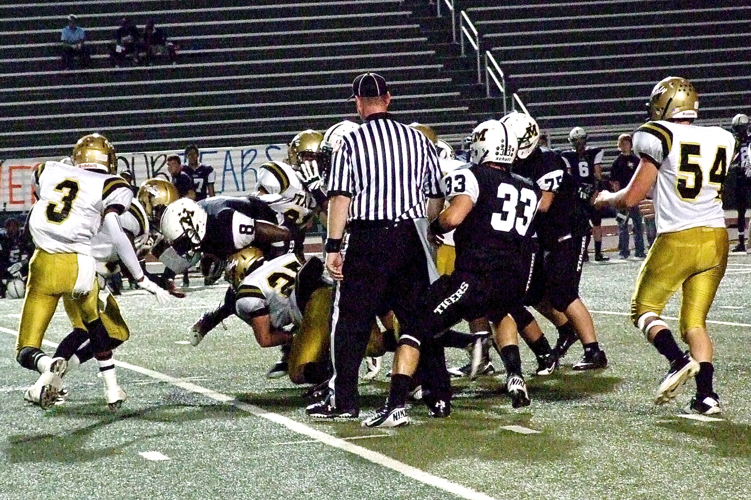 Gladiators enjoy center stage during Dale Hansen Classic but Malakoff gets win « previous story album next » Linebacker Shad Newman(25) brings down a Tiger back with help from TaMarcus Sheppard(10) and Trevon Robertson(3). (Barry Byers) Download original photo