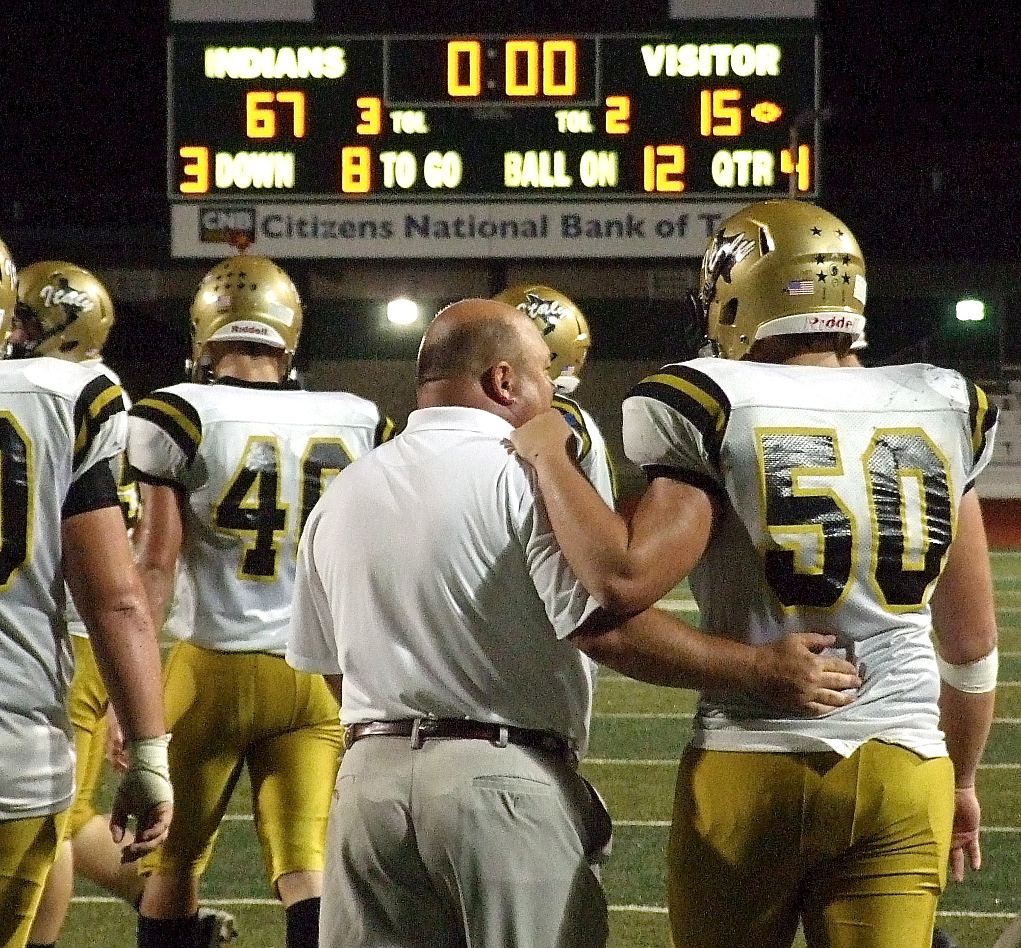 Italy suffered a tough defeat to Malakoff but assistant coach Wayne Rowe and senior captain Zain Byers(50) continue talking football with the Gladiators having bigger goals ahead of them. (Barry Byerss)