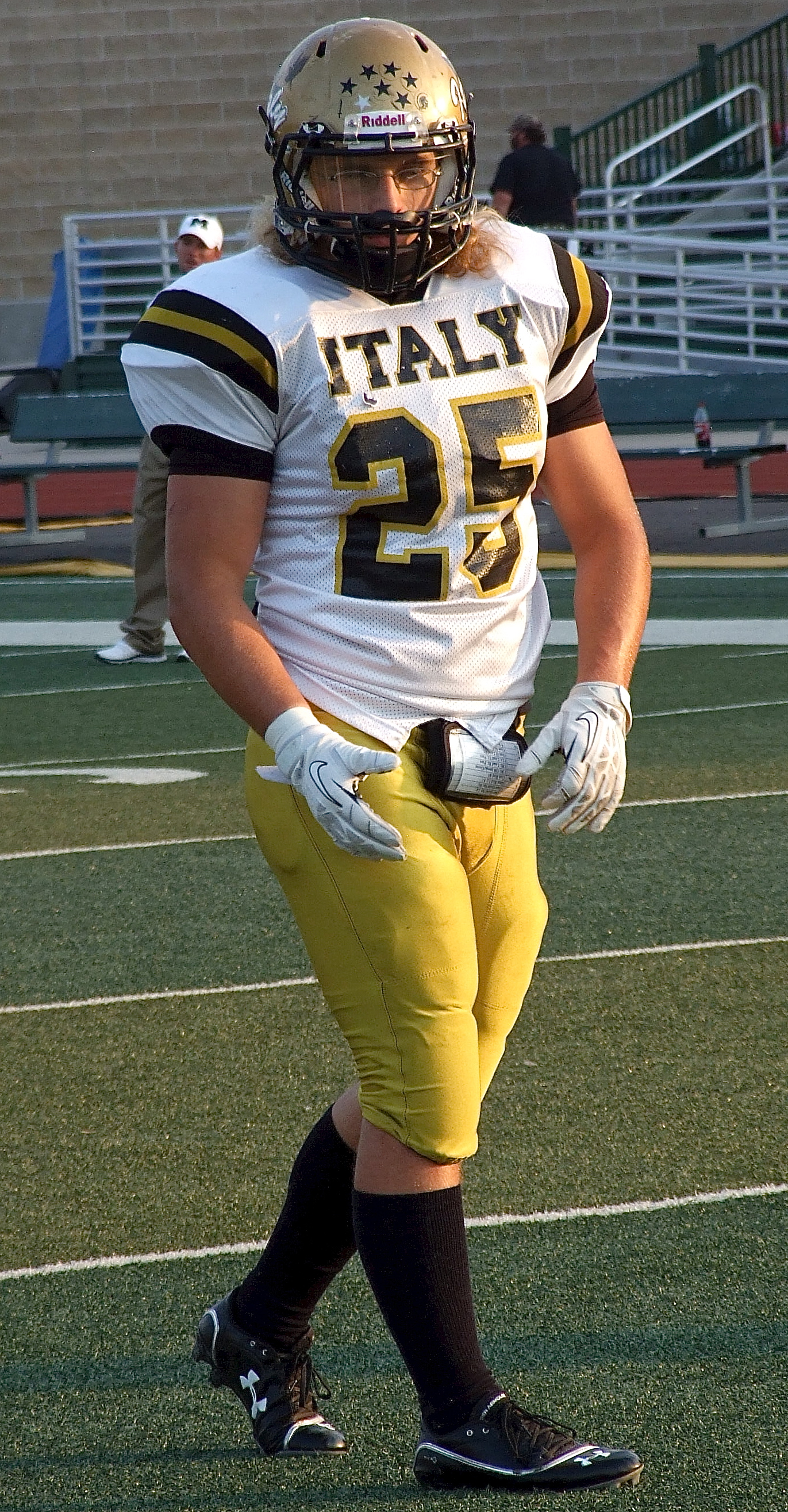 More Action from the 2013 2nd Annual Dale Hansen Football Classic « previous story album next » Gladiator senior captain Shad Newman(25) runs a pass route during warmups. (Barry Byerss) Download original photo