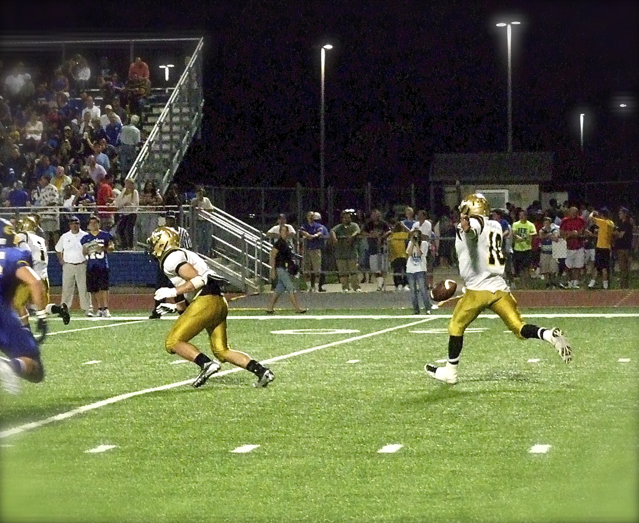 More regular season action between Italy and Sunnyvale in Week 3 « previous story album next » Hunter Merimon(9) protects as TaMarcus Sheppard(10) punts the ball away. (Barry Byers) Download original photo
