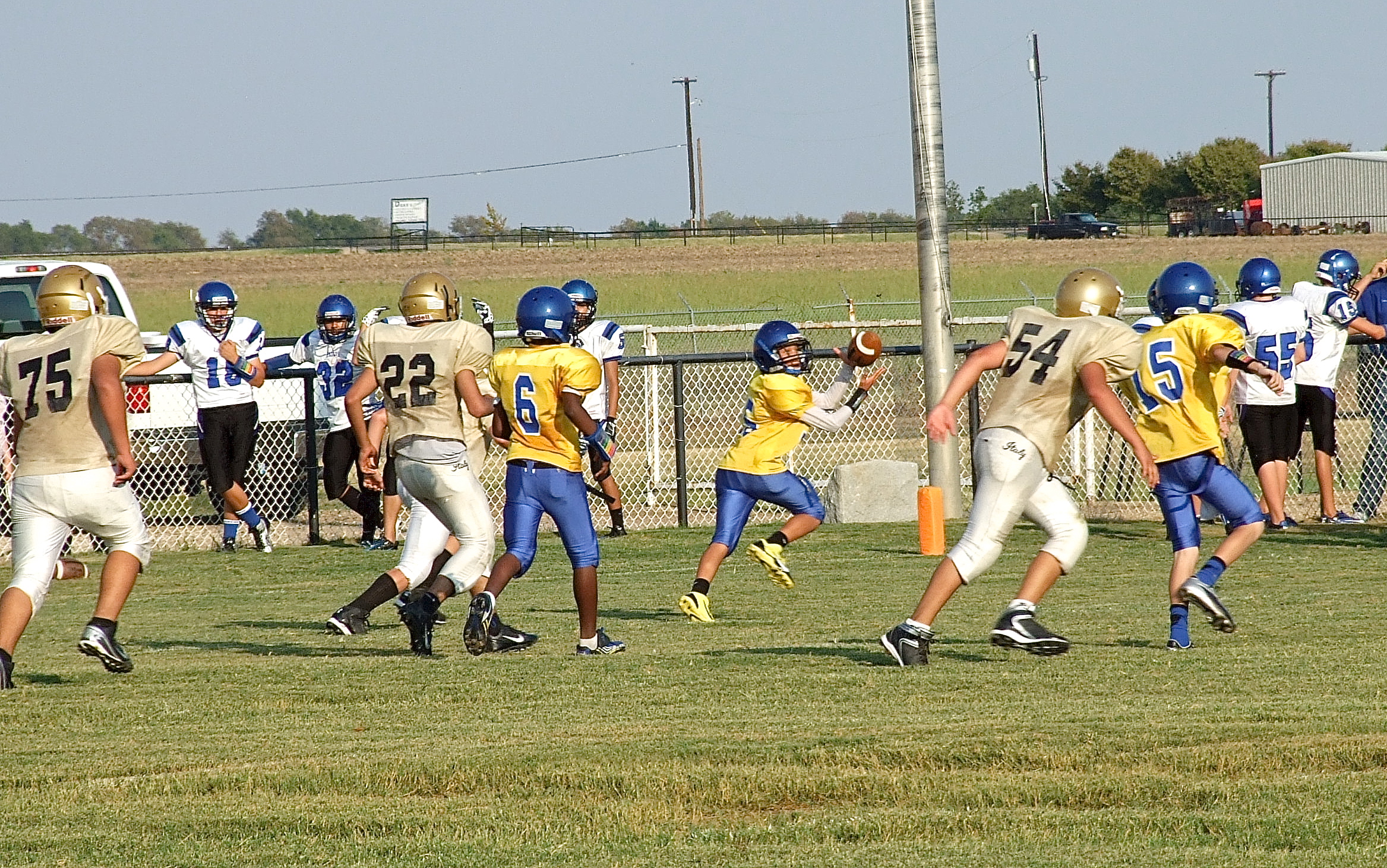 Sunnyvale pulls off the comeback by scoring 15-points in the final 2:59 to outlast Italy’s 7th Grade 15-14. Pictured is Sunnyvale’s 2-point conversion pass to sneak away with the win. (Barry Byers)