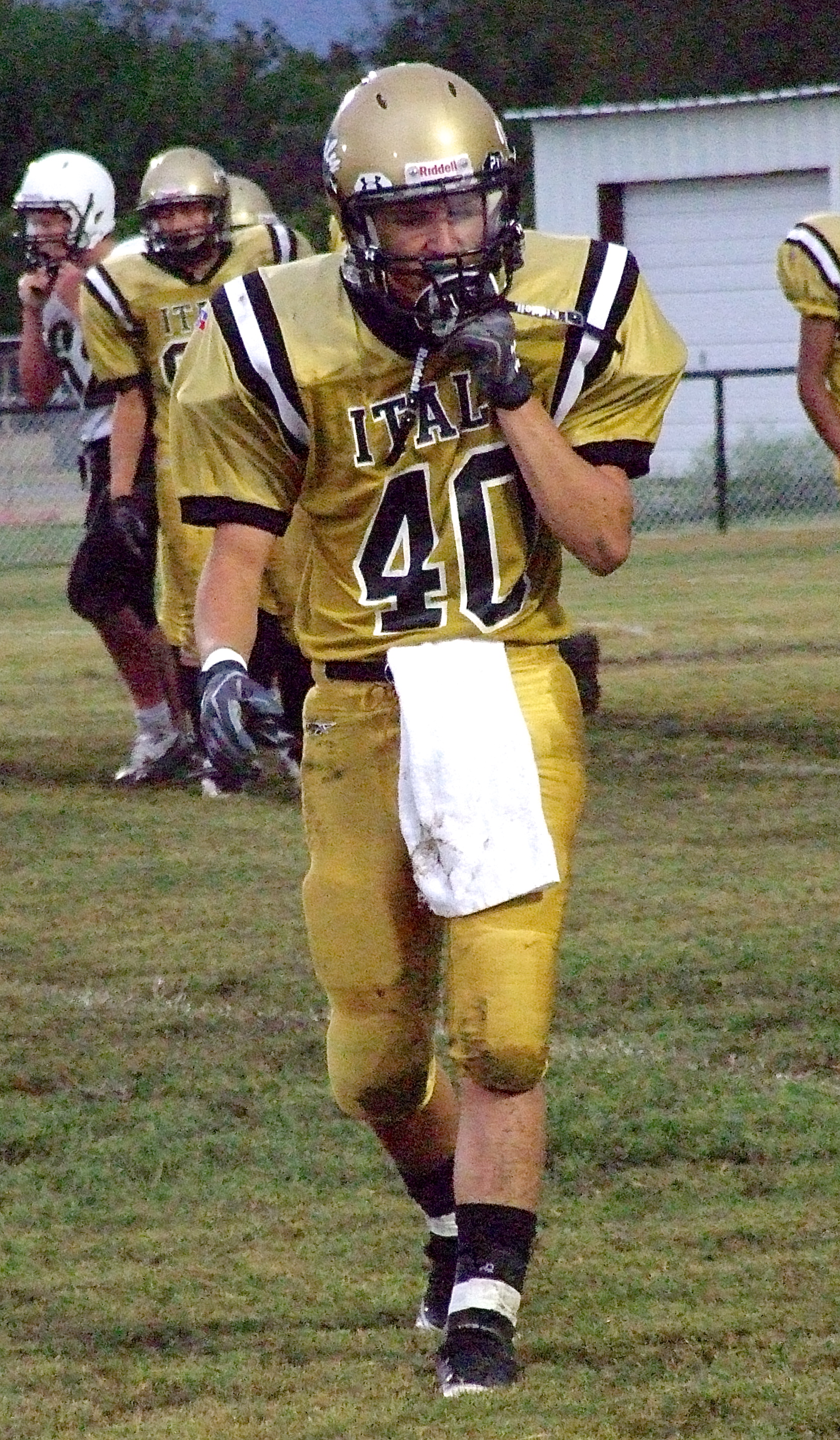 Italy JH Gladiators win on final play; JV game cut short due to bad weather « previous story album next » Colton Grant(40) returns to the sideline after the JV game gets delayed by lightning just before halftime. (Barry Byers) Download original photo