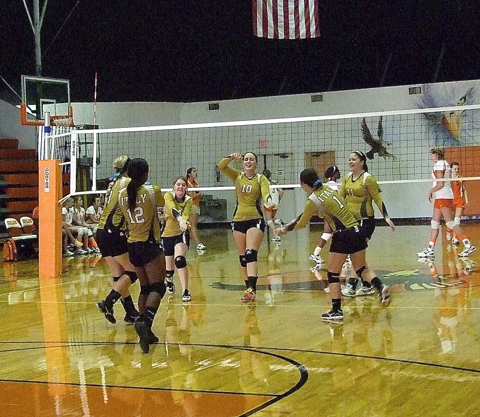 Lady Gladiators win the 5th set tiebreaker to defeat Avalon for a district win « previous story album next » Italy celebrates a point! (Barry Byers) Download original photo