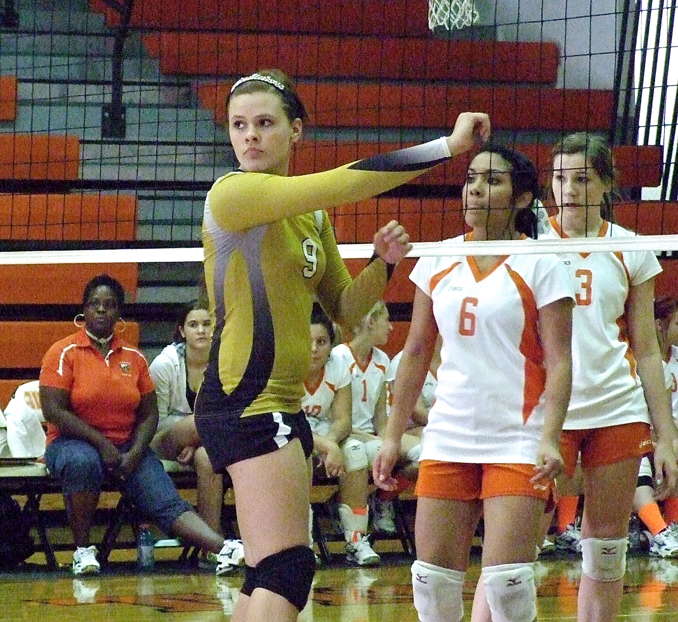 Lady Gladiators win the 5th set tiebreaker to defeat Avalon for a district win « previous story album next » Lillie Perry(9) prepares for the upcoming serve. (Barry Byers) Download original photo