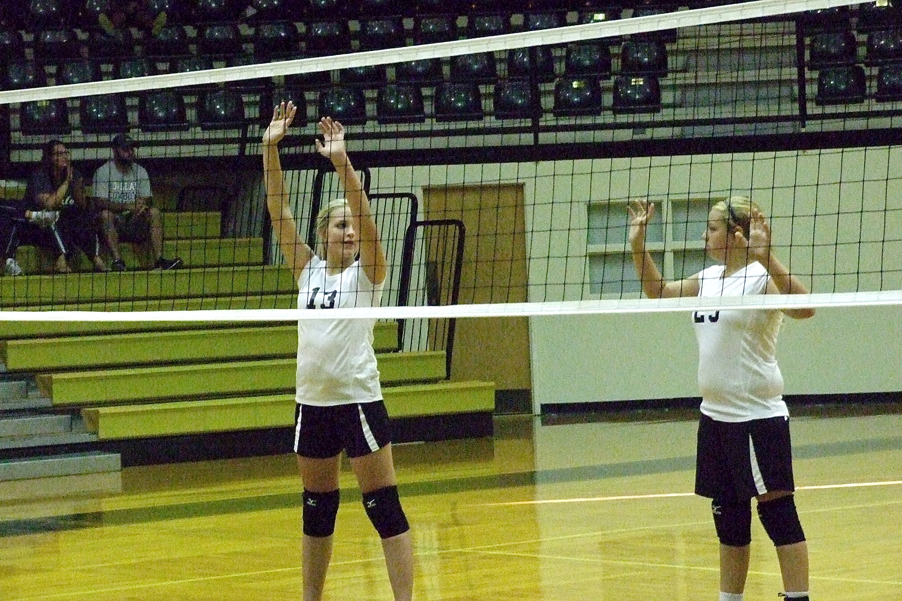 Italy’s Junior High volleyball teams make strides against Kopperl « previous story album next » Annie Perry(13) and Brycelen “ChaCha” Richards(23) strategize before the serve. (Barry Byers) Download original photo