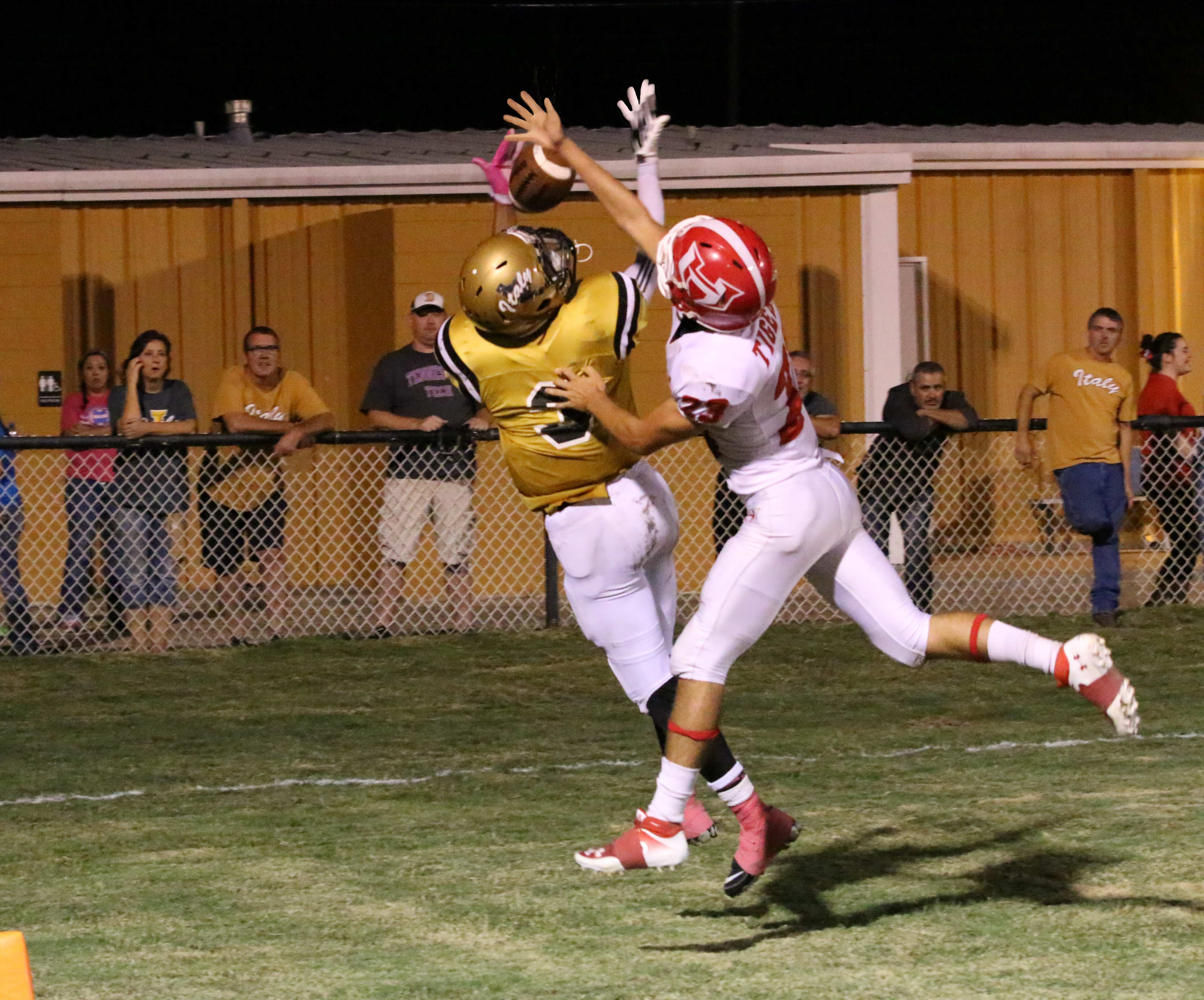 Gladiators fight thru injuries but Hico hands Italy fourth loss in a row « previous story album next » Helping Italy to end the night on a positive note is senior receiver Tre Robertson(3) who makes another outstanding catch, this time for 6 points. (Barry Byers) Download original photo