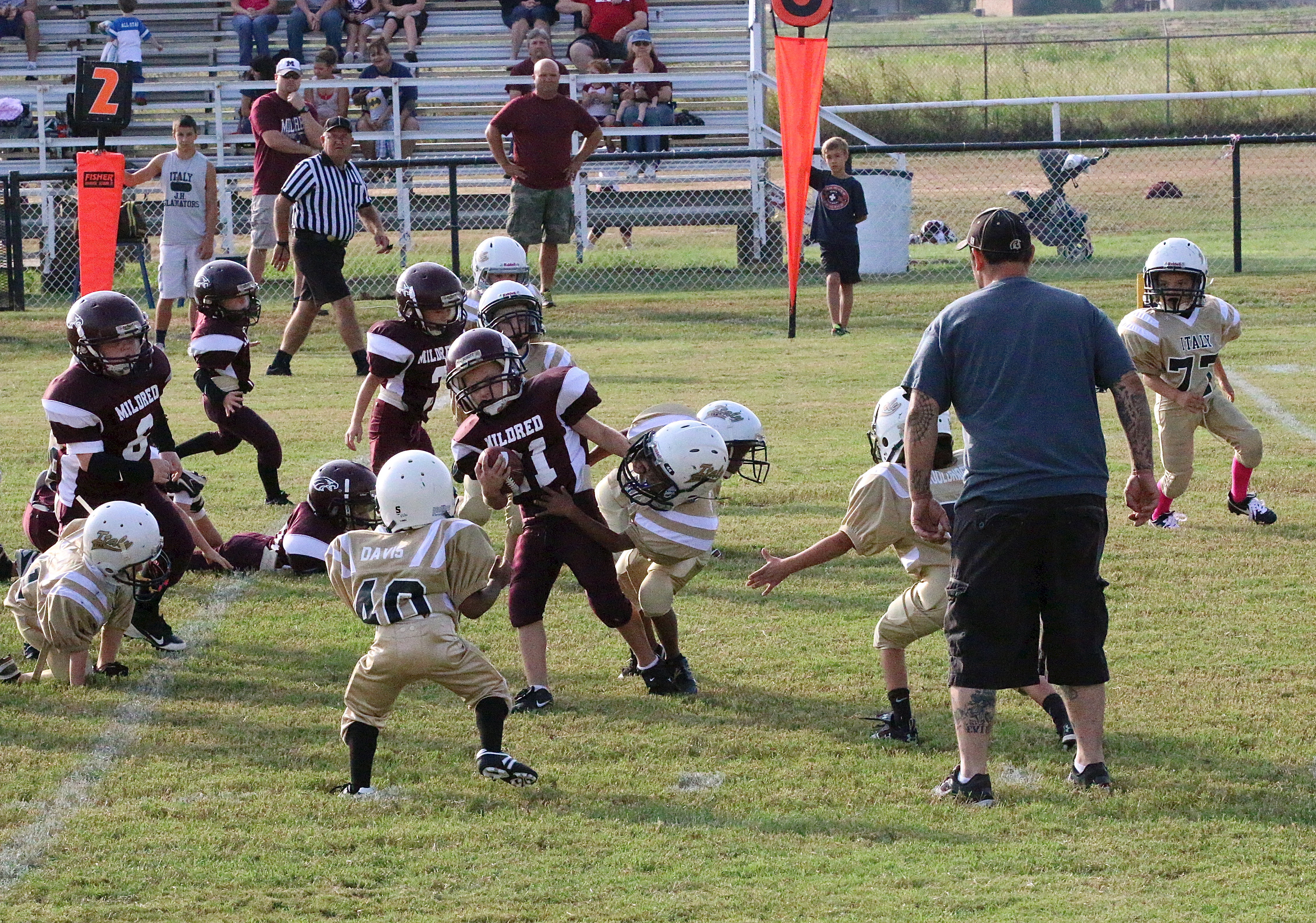 2013 IYAA football and cheerleading versus the Mildred Eagles « previous story album next » Italy collided with Mildred on Saturday for exciting grid-iron action. (Barry Byers) Download original photo