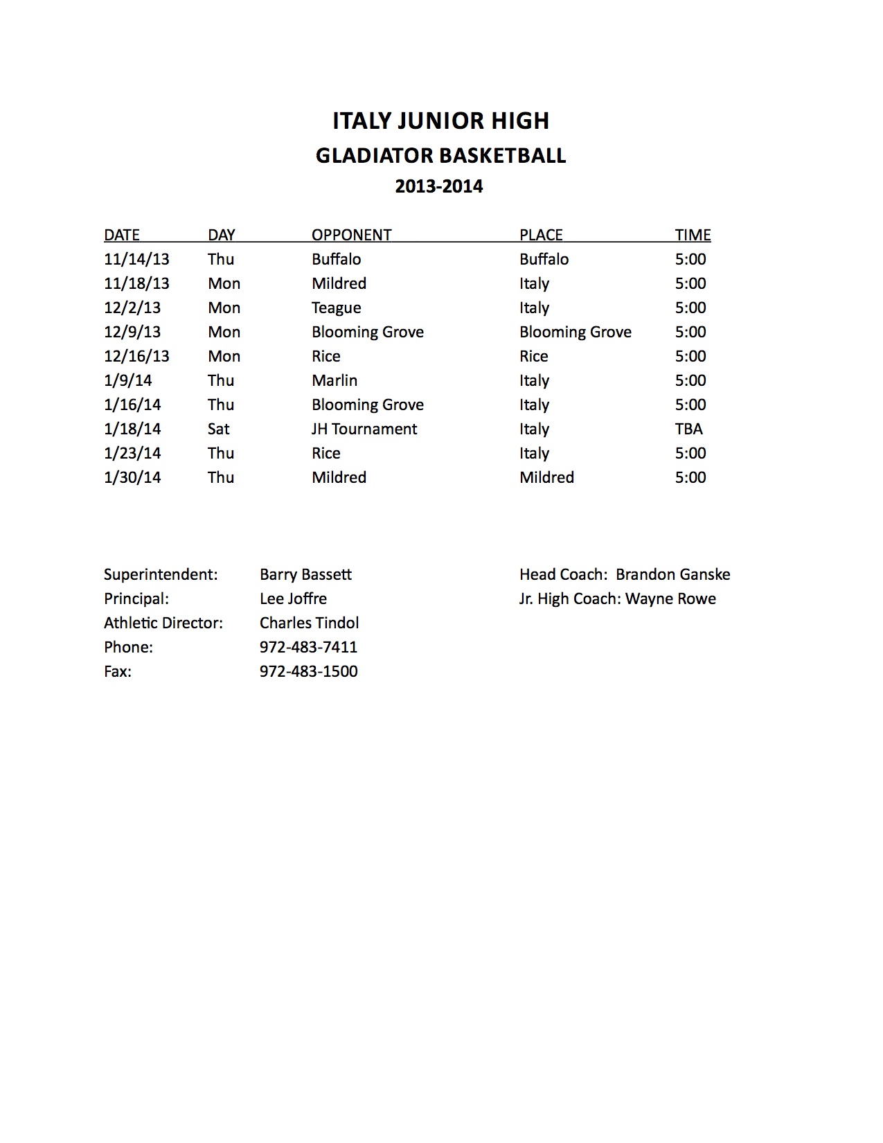 Italy Junior High Basketball Schedules — 2013-2014 Season « previous story album next » 2013-2014 Italy Junior High Boys Basketball Schedule Download original photo