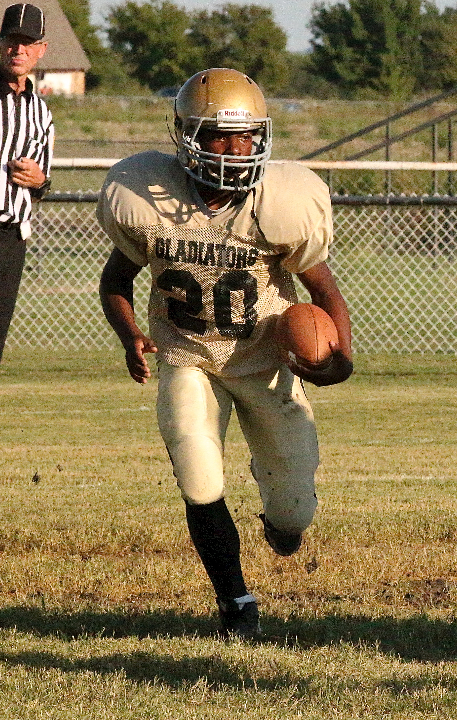 More from the Italy Junior High/JV games versus Itasca on Willis Field « previous story album next » Kendrick Norwood(20) tears up the Willis Field turf on his way to another big game running the ball for Italy’s junior high. (Barry Byers) Download original photo