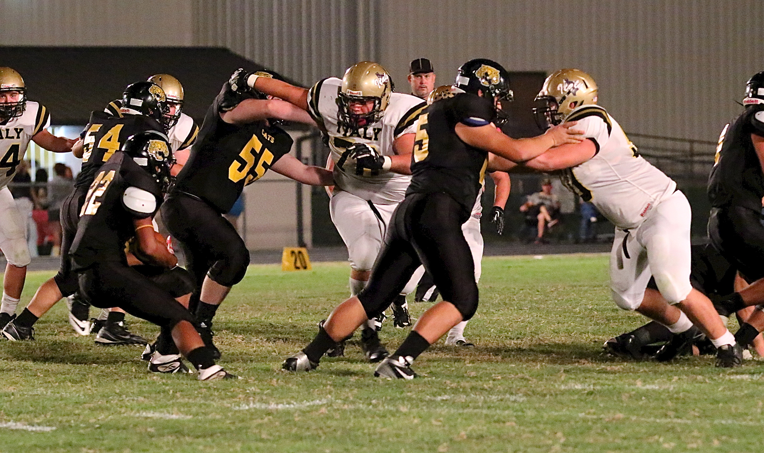 Itasca’s mascot is a mythical cat but Italy’s 46-6 win was no illusion « previous story album next » Defensive end Zain Byers(50) turns an Itasca ball carrier back inside where teammates Bailey Walton(54), John Byers(56) and Colin Newman(76) are waiting. (Barry Byers) Download original photo
