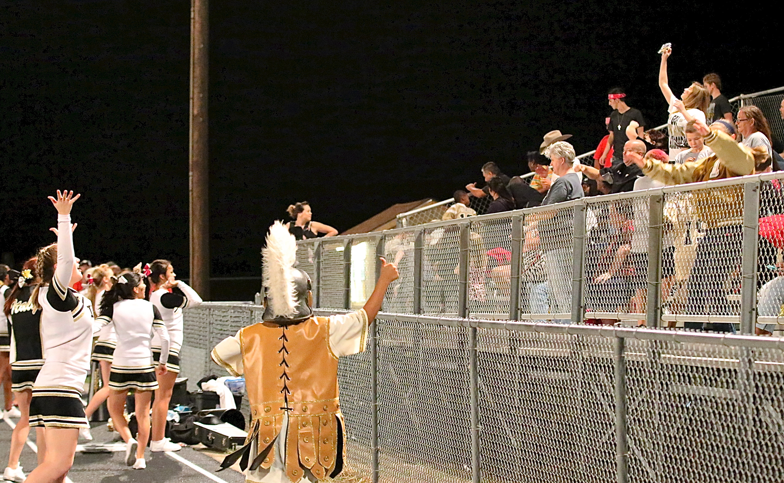 More action shots from Italy’s district opener win over Itasca « previous story album next » Cheer captain Taylor Turner, the rest of the cheerleaders and Mascot Noeli Garcia toss goodies into the crowd after an Italy touchdown. (Barry Byers) Download original photo