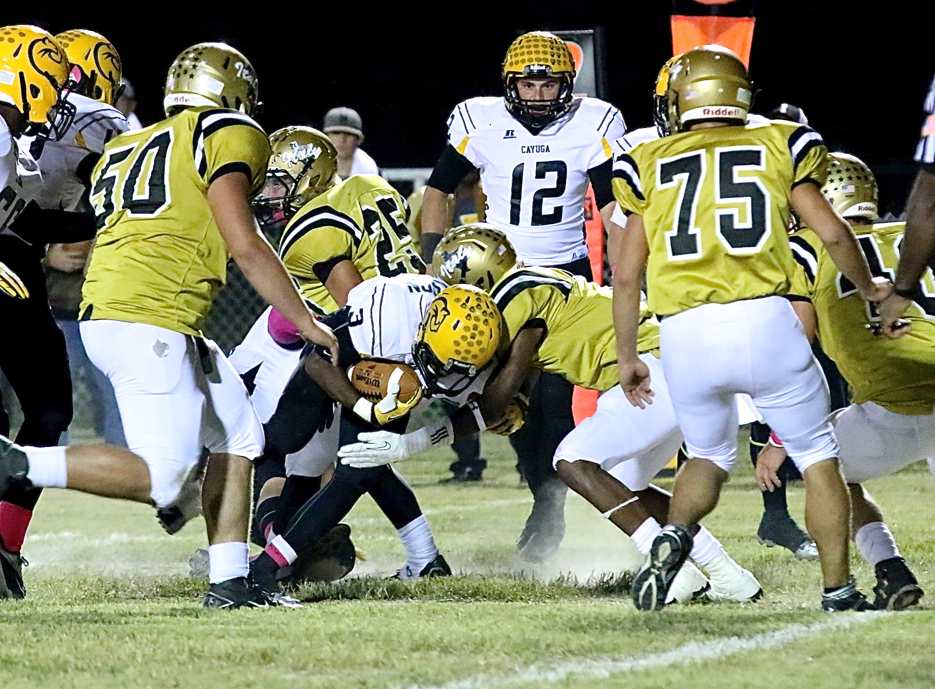 Homecoming 2013 continued, the memories will last a lifetime… « previous story album next » Trevon Robertson(3) delivers a hit on a Cayuga running back. Robertson had 9 tackles (5 solos) in the game. (Barry Byers) Download original photo