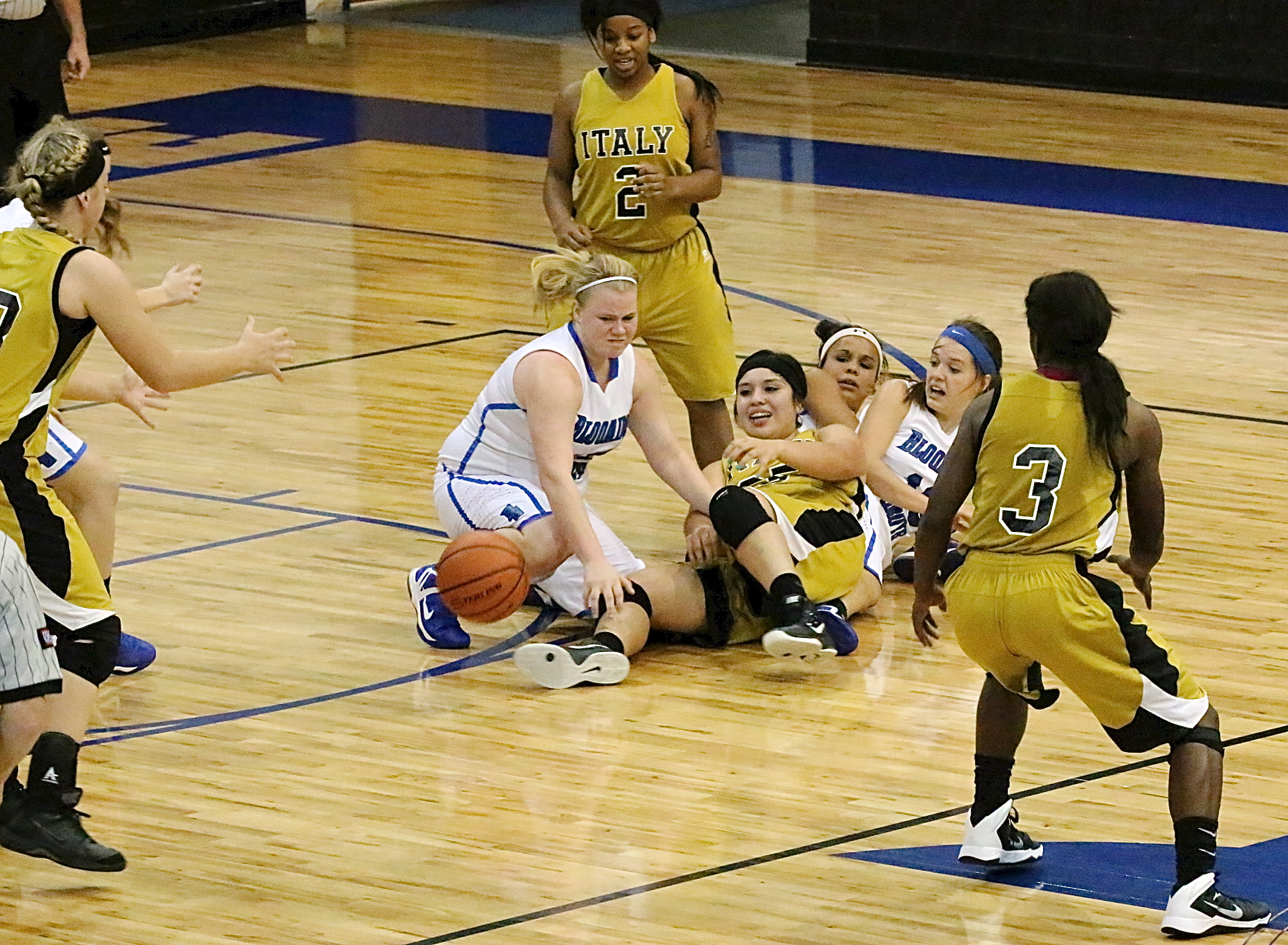 Lady Gladiator Basketball plays explosively well against 2A Blooming Grove « previous story album next » Italy’s Monserrat Figueroa(25) wins the battle for a loose ball. (Barry Byers) Download original photo