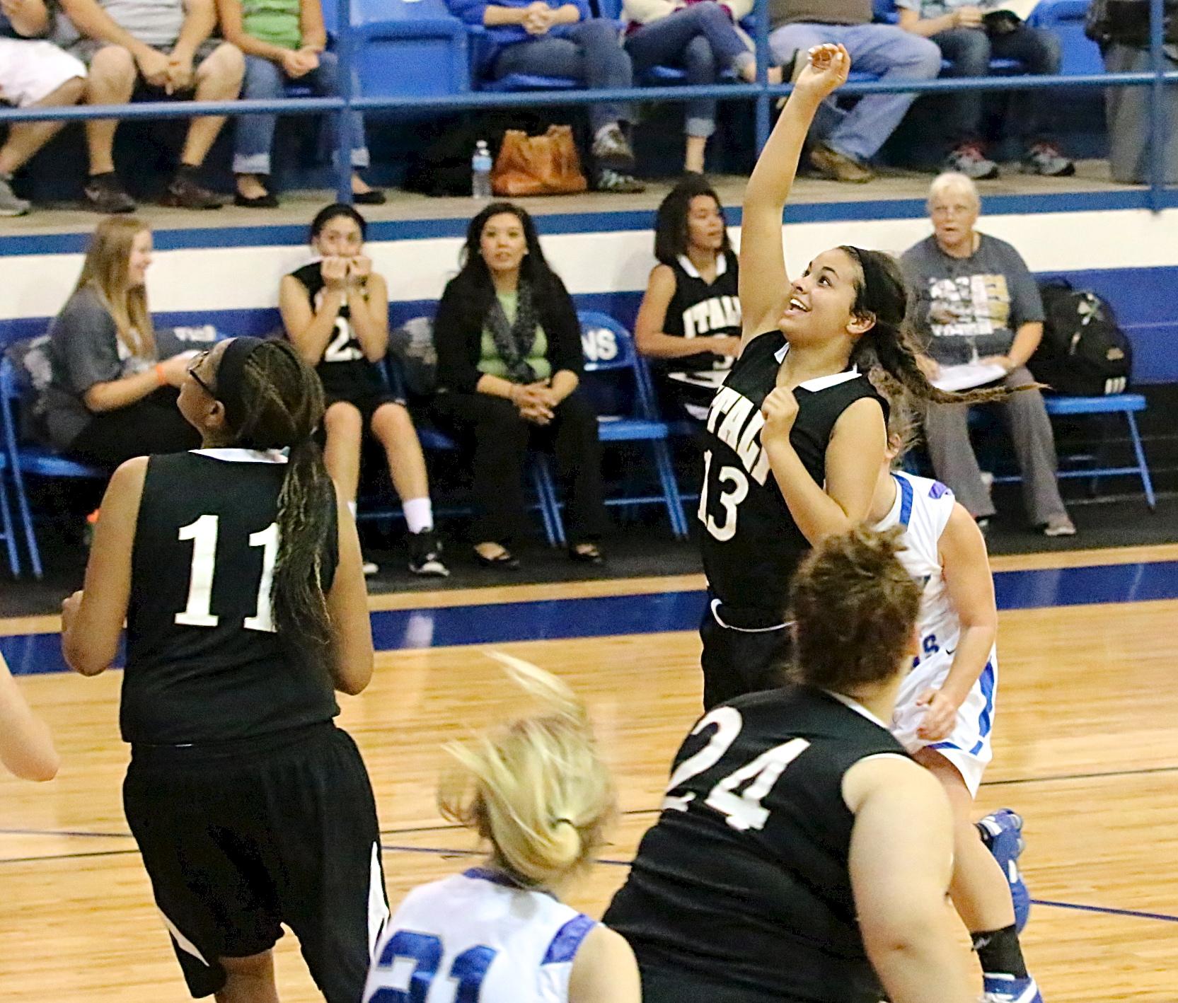Enjoy more Lady Gladiator basketball from their games against Blooming Grove « previous story album next » Italy’s JV Lady Gladiators had plenty to smile about as Ashlyn Jacinto(13) lofts up a happy shot against Blooming Grove. (Barry Byers) Download original photo