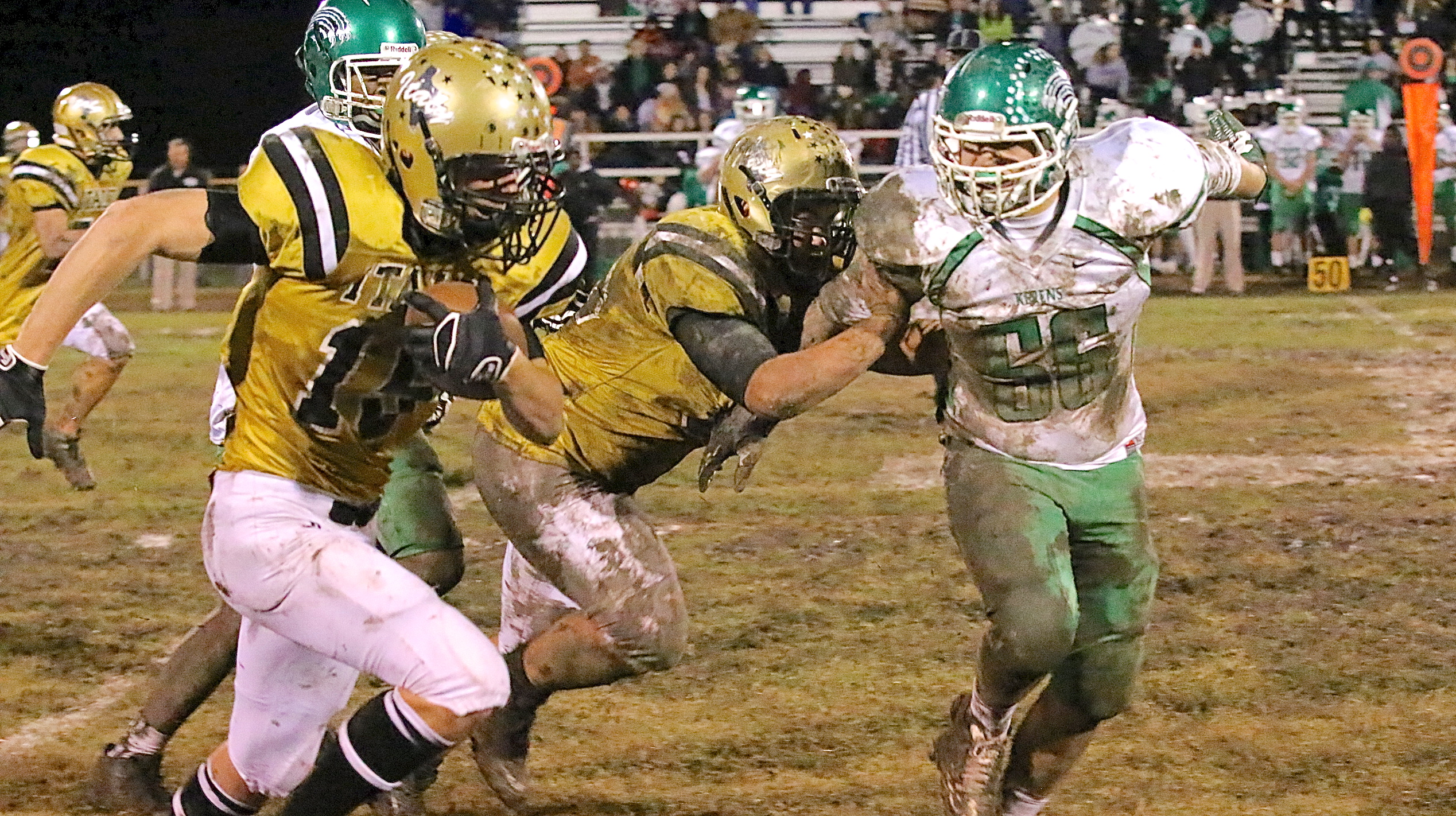 The defending champs keep their title, the Gladiators K.O. Kerens 33-7 « previous story album next » Senior guard Zain Byers(50) hustles downfield to throw a block for junior tight end/receiver Cody Boyd(15) who reaches the first down marker. (Barry Byers) Download original photo