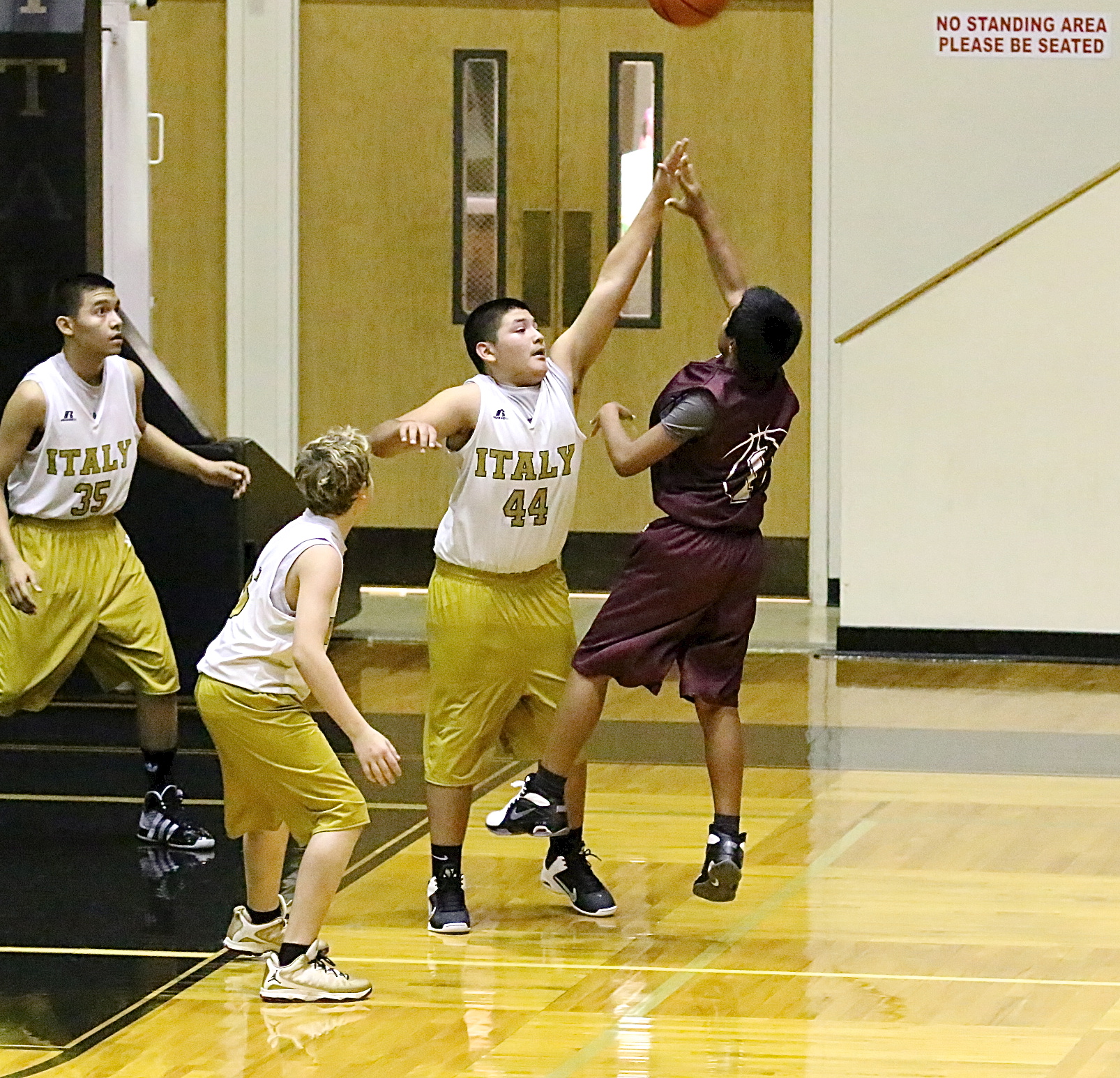 Italy’s Junior High basketball boys get season started at home against Mildred « previous story album next » Alex Garcia(44) defends a Mildred shot attempt. (Barry Byers) Download original photo