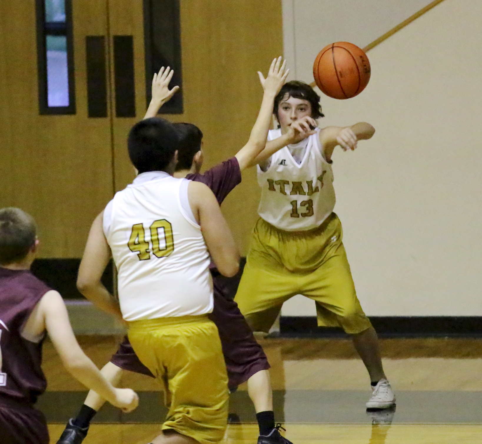 Italy’s Junior High basketball boys get season started at home against Mildred « previous story album next » Andrew Oldfield(13) inbounds to Chris Munos(40). (Barry Byers) Download original photo