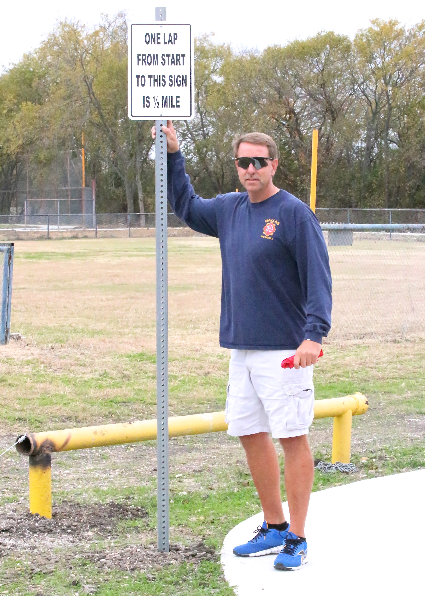 Hyles, Hobbs dedicate Walking trail at Upchurch Ballpark in Italy « previous story album next » Charles Hyles points out the lap markers. Whether you start the trail clockwise or counterclockwise, each direction has a sign installed for convenience. (Barry Byers) Download original photo