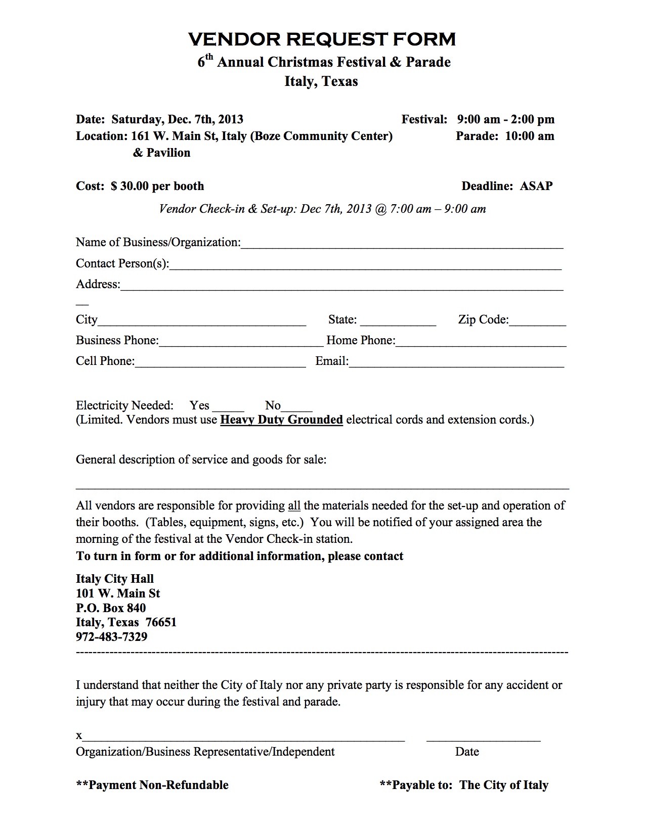 Italy’s Annual Christmas Festival and Parade plans are in place « previous story album next » Vendor Form Download original photo