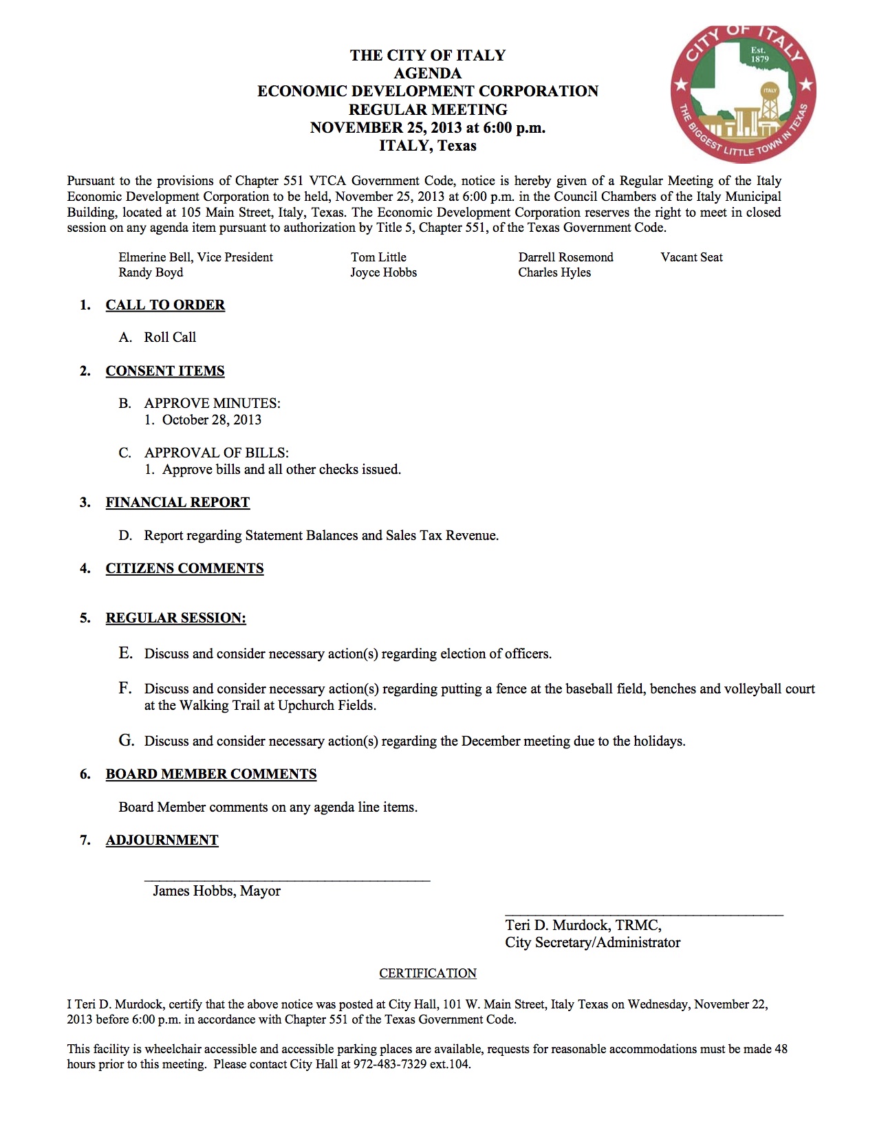 Agenda: Italy EDC Meeting – Monday, November 25th, 2013 « previous story album next » Download original photo