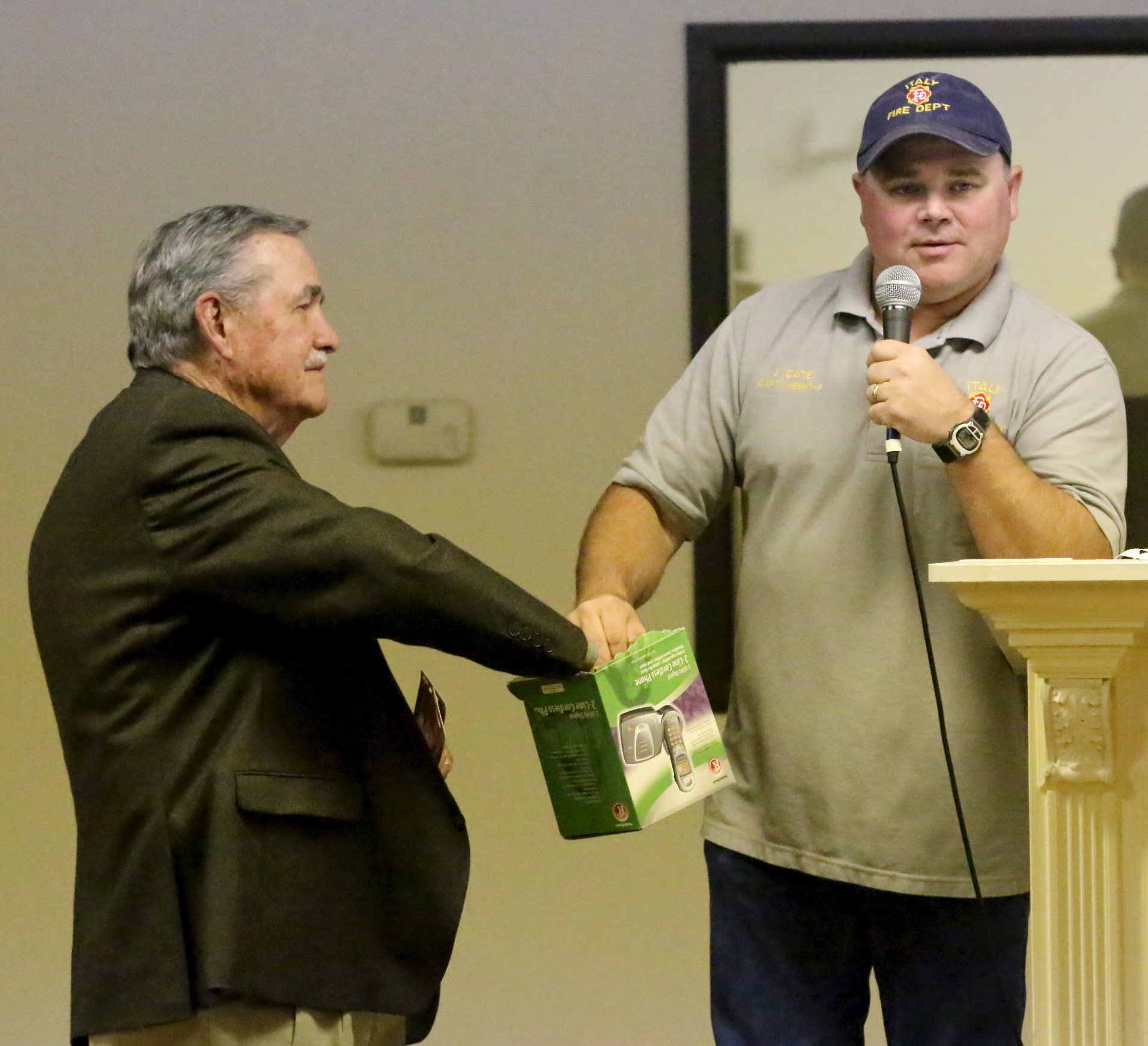 Italy Fire Department shares award presentations with community for the holidays « previous story album next » Fire District Board treasurer James Steele draws a name to see who wins gift certificates as Jackie Cate holds the box of names. (Barry Byers) Download original photo