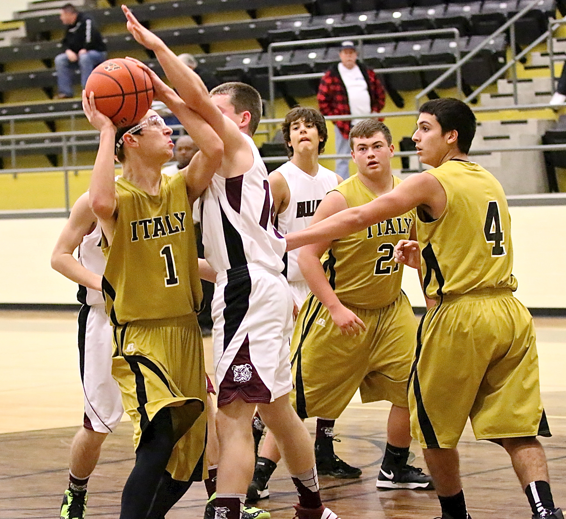 Italy defeats Bynum 81-40 during second-round of Hubbard basketball tournament « previous story album next » Gladiator Ryan Connor(1) sticks with it until he scores. (Barry Byers) Download original photo