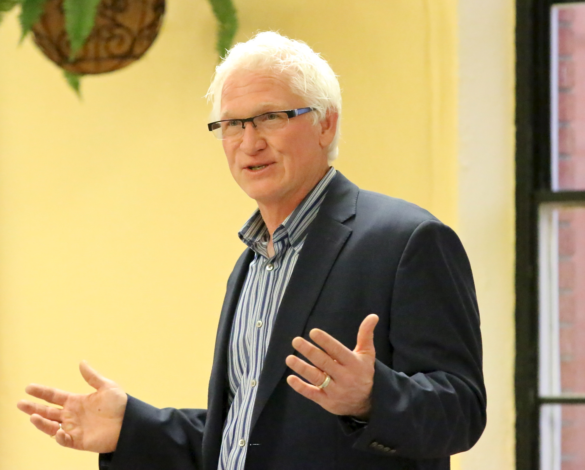 Thomas E. Batenhorst with GSBS Architects out of Fort Worth talks with the school board in hopes of helping Italy’s Johnny Johnson realize his dream of a constructing a sports facility which would include a track, pool and a turf football field. (Barry Byers)