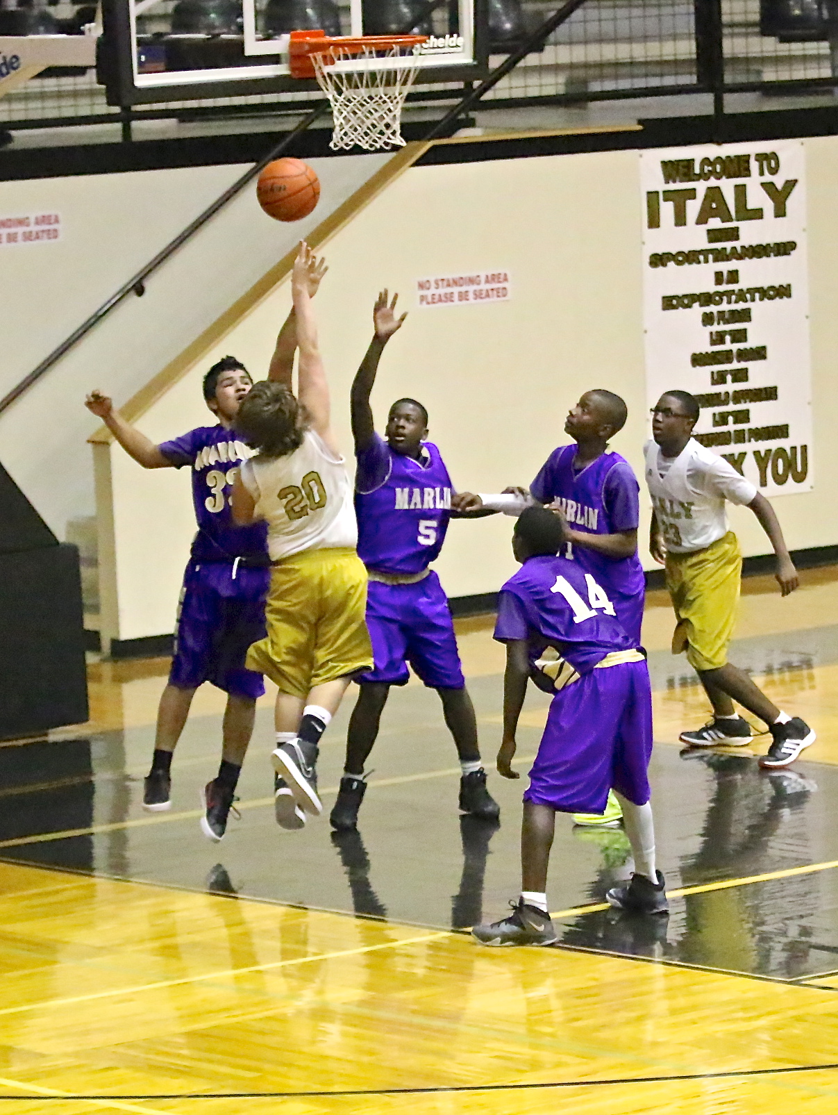Marlin wins 7th grade boys game but Italy’s 8th grade turns the tide in game 2 « previous story album next » Cade Roberts(20) scores over a couple of Marlin defenders. (Barry Byers) Download original photo