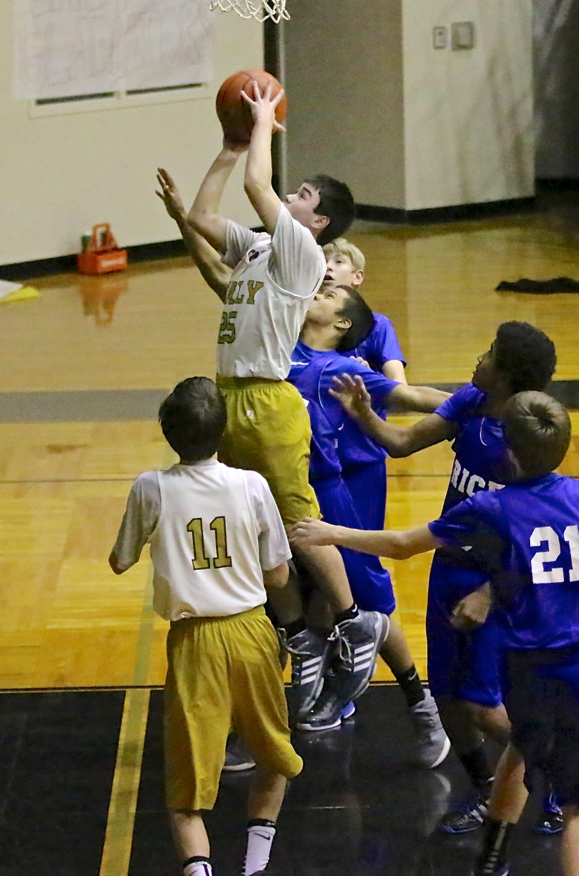 More action from the Italy Junior High Boys and their wild games against Rice « previous story album next » Scoring in the lane is Italy’s Kyle Tindol(25). (Barry Byers) Download original photo
