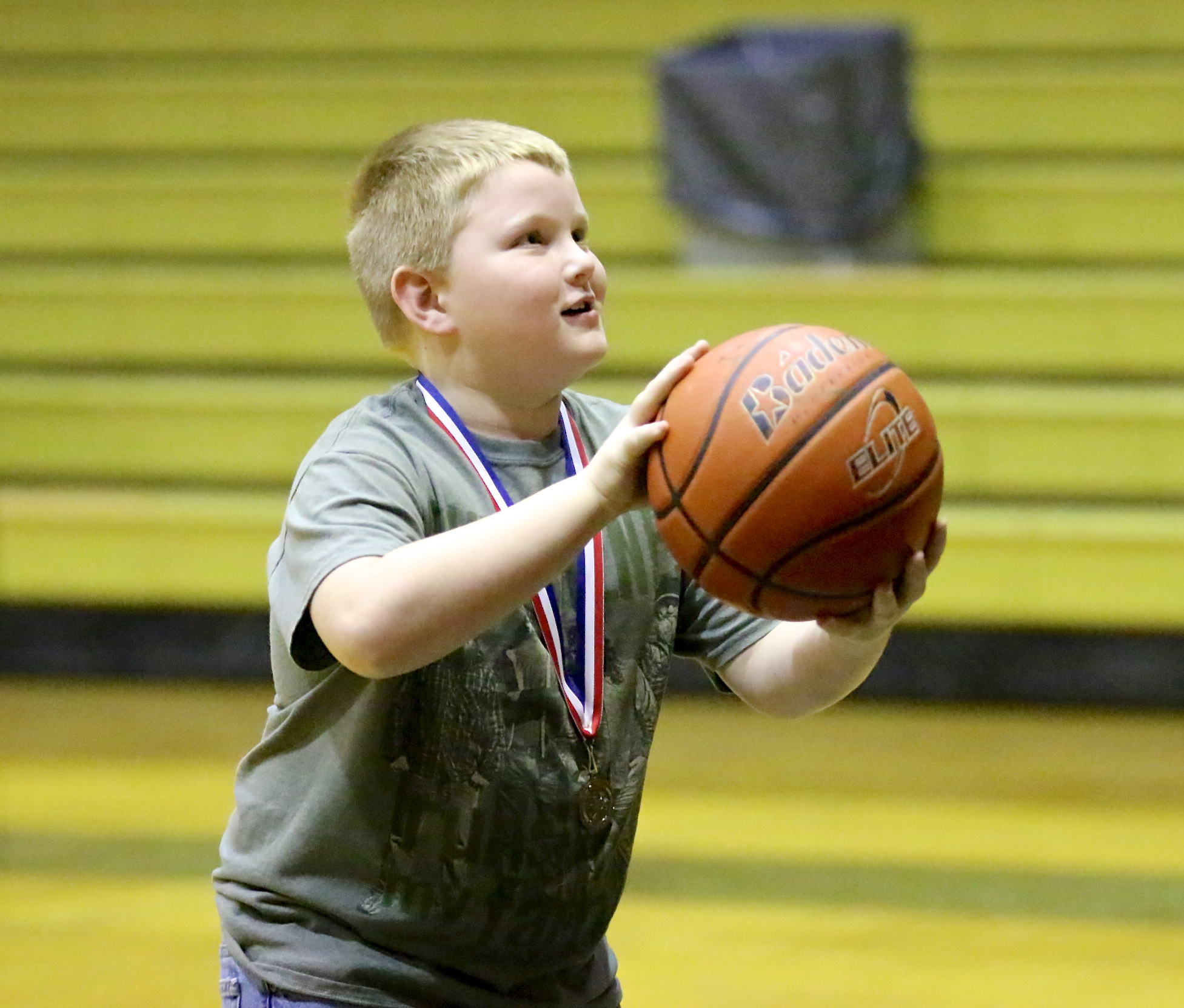 Lady Gladiators win rematch in grand fashion, 60-36 over the Lady Gateway Gators « previous story album next » Bryce Ballard, takes a shot at winning one of the prizes raffled off by the Italy Gladiator Baseball team during a break in the action. (Barry Byers) Download original photo